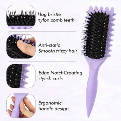 Curl Defining Brush Curly Hair Styling Tool Bounce Define Combing Shaping Curls for Men Women Reduce Pulling Purple