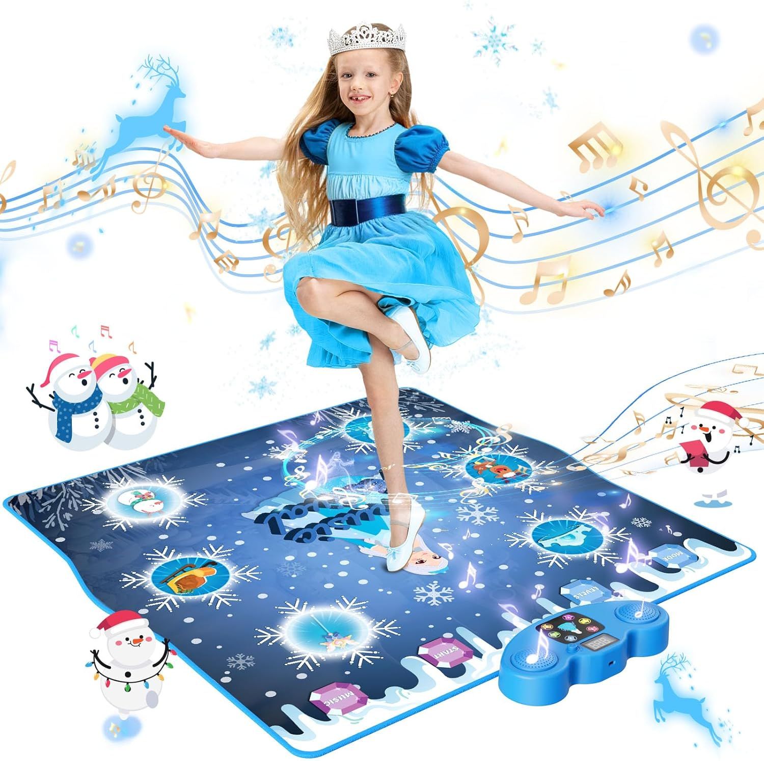 Dance Mat, Ice and Snow 6 Button Princess Dance Mat, Bluetooth Music Control, 13 Built in Music, 6 Game Modes, 3 to 10 Year Old Girl Gifts