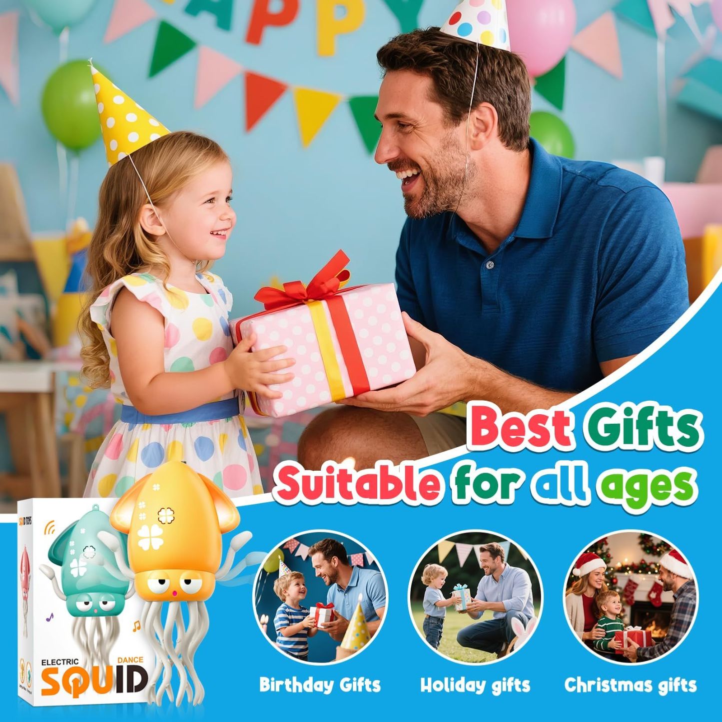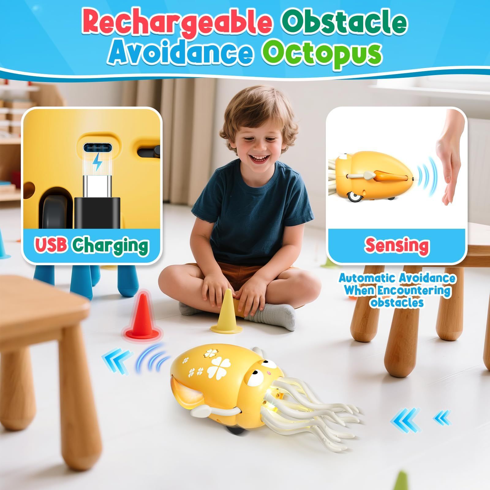 Dancing Octopus Baby Toy,Electric Crawling Octopus Tummy Time Toy,Rechargeable Magic Dancing Music Squid for Age3+,Birthday Gifts,Funny Squid (Yellow)