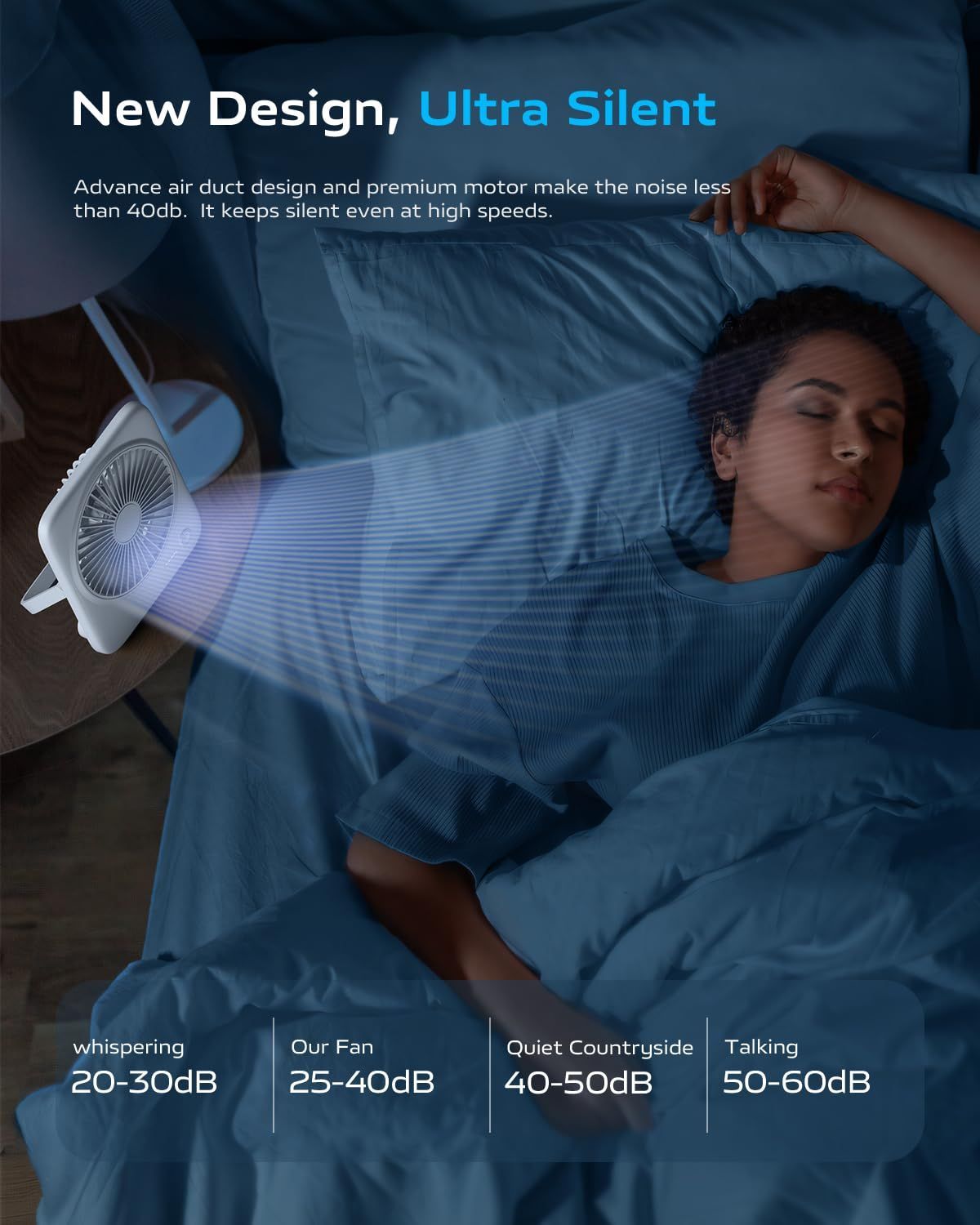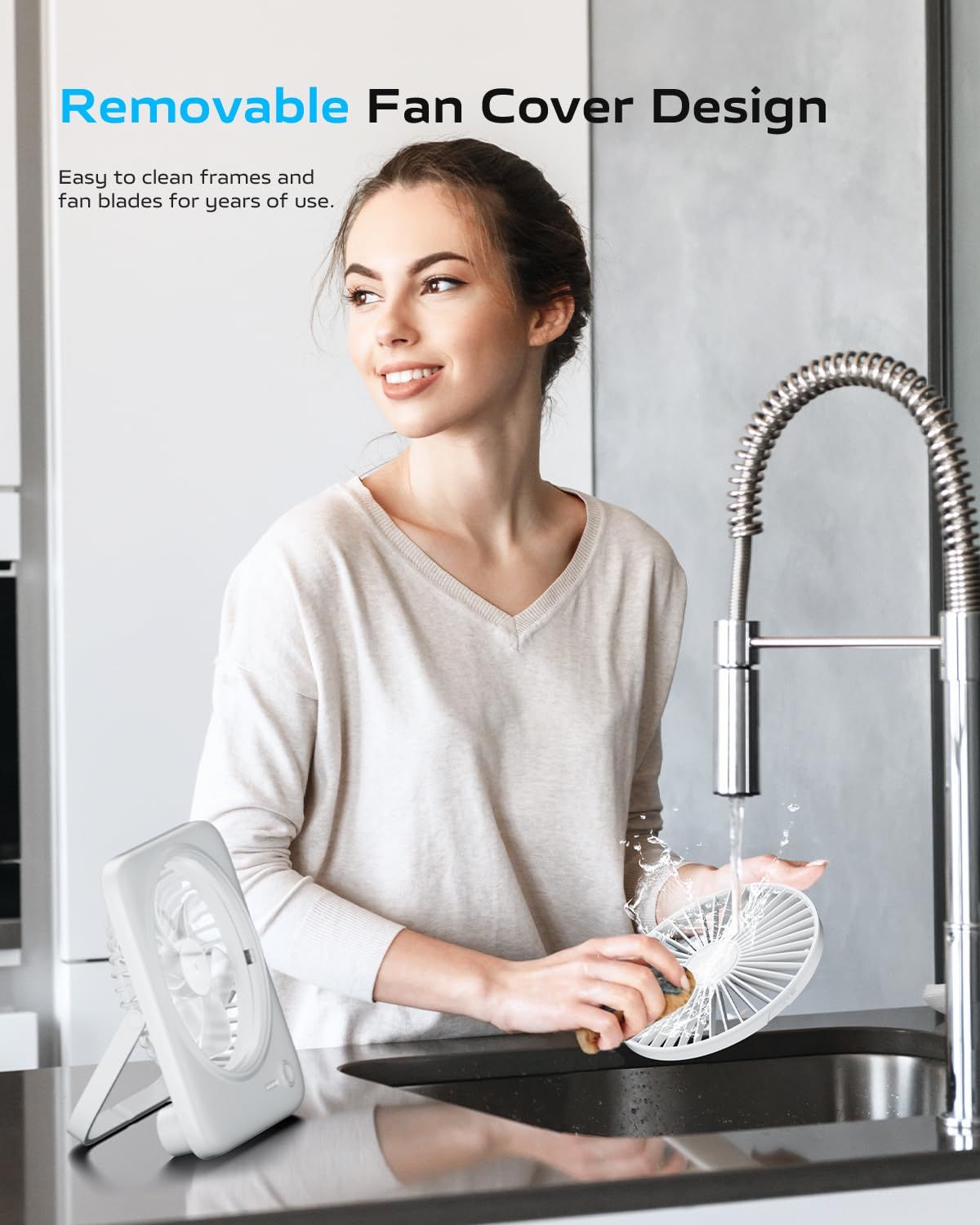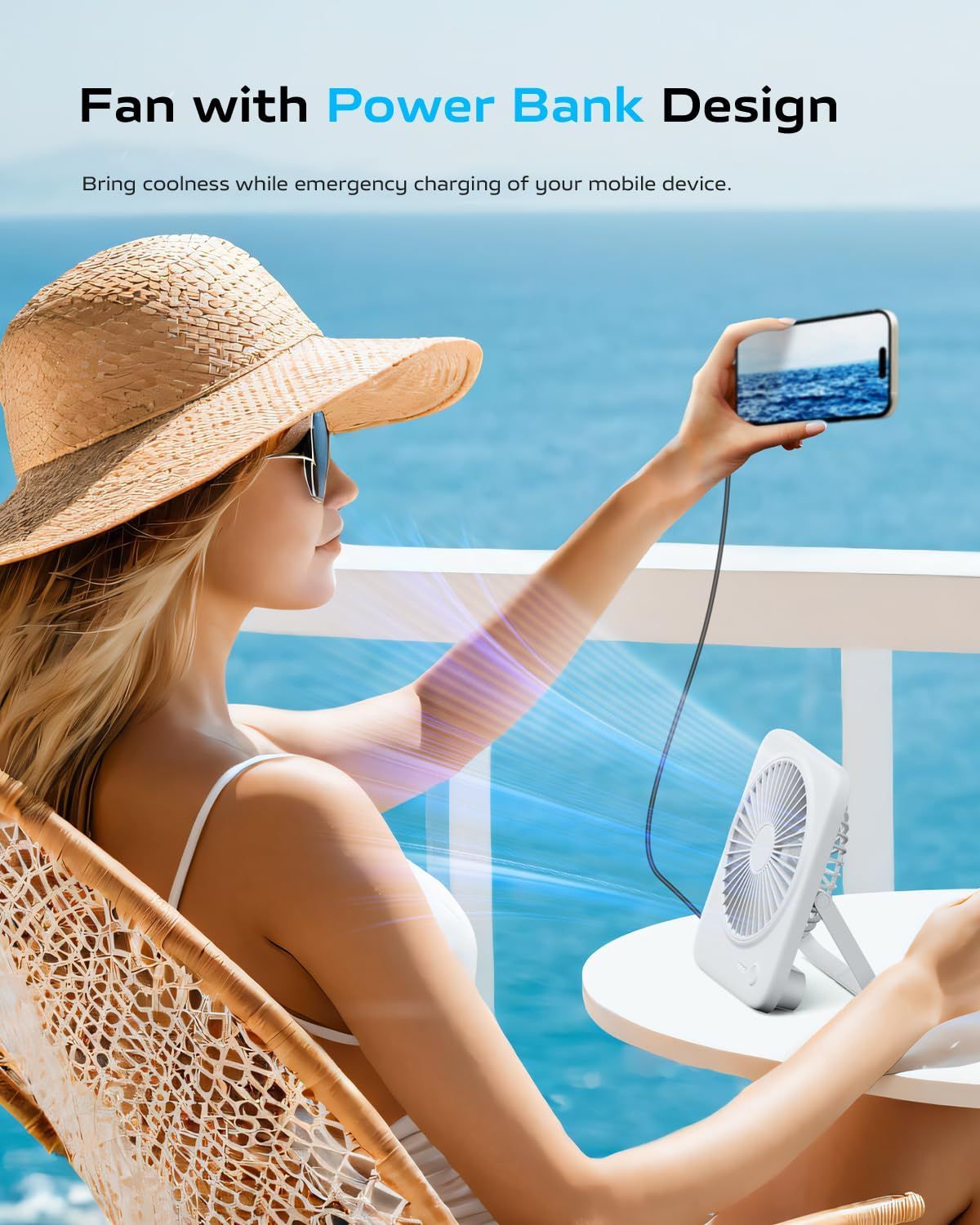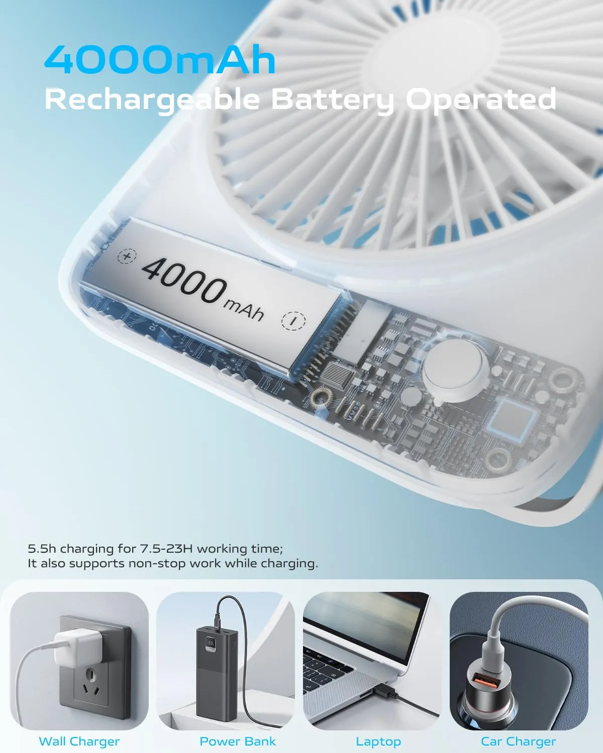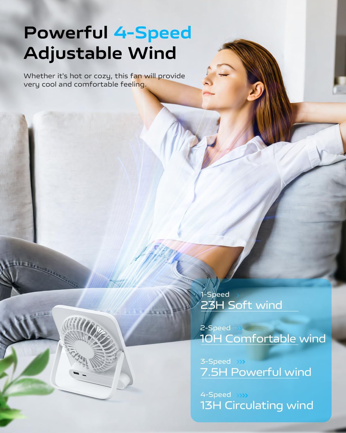 Desk Fan Portable Fan Rechargeable,4000mAh Battery Operated Personal Fan,Small Silent Travel Fan with Power Bank,4 Speeds Desktop Fan (White)
