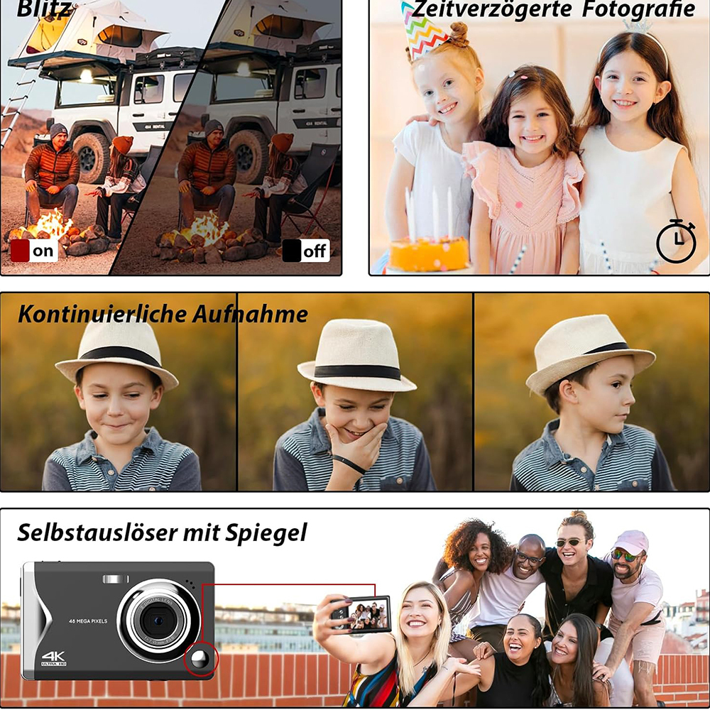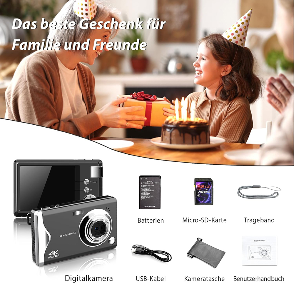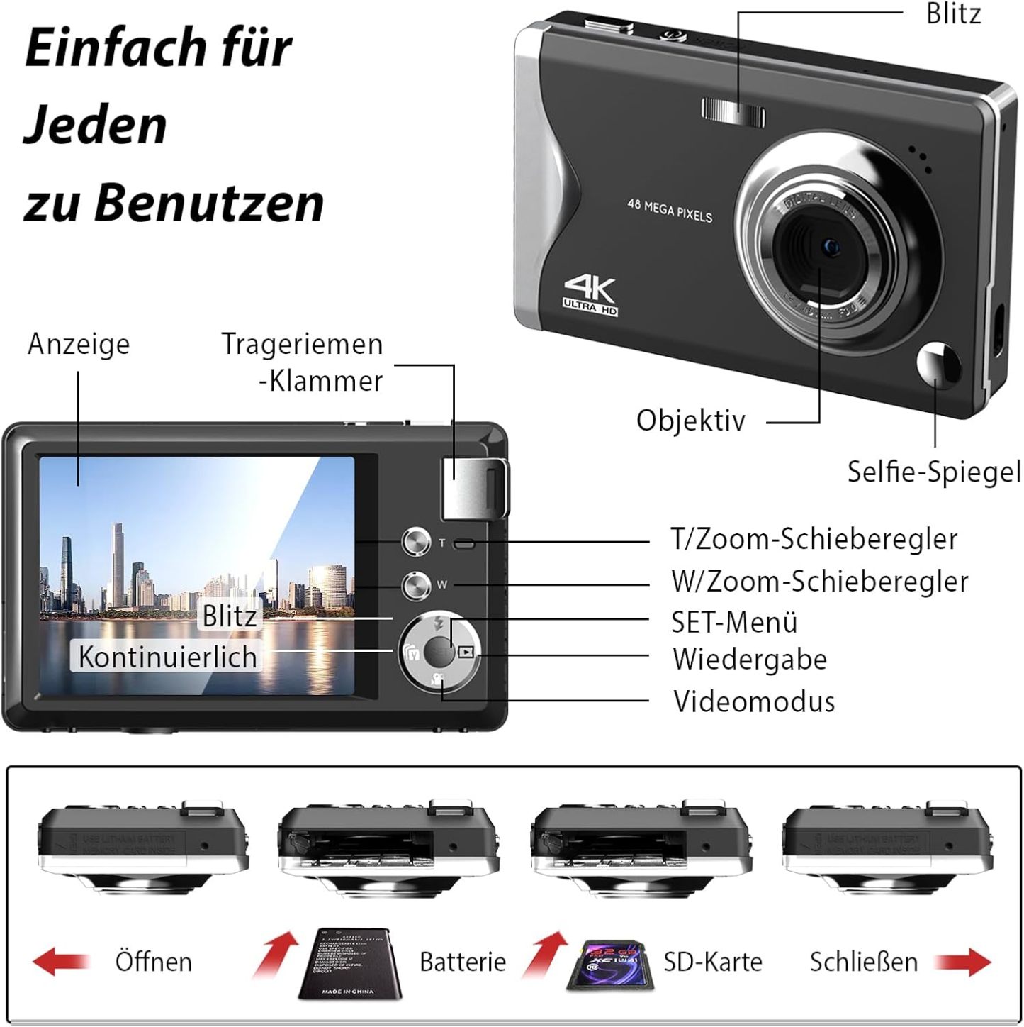 Digital Camera, 1080 FHD Photo Camera, AutoFocus 4K Digital Camera, Portable 16X Digital Zoom Camera for Teenagers Men Women Beginners Girls Boys, Black