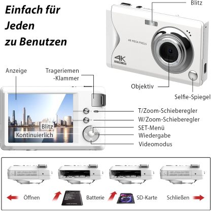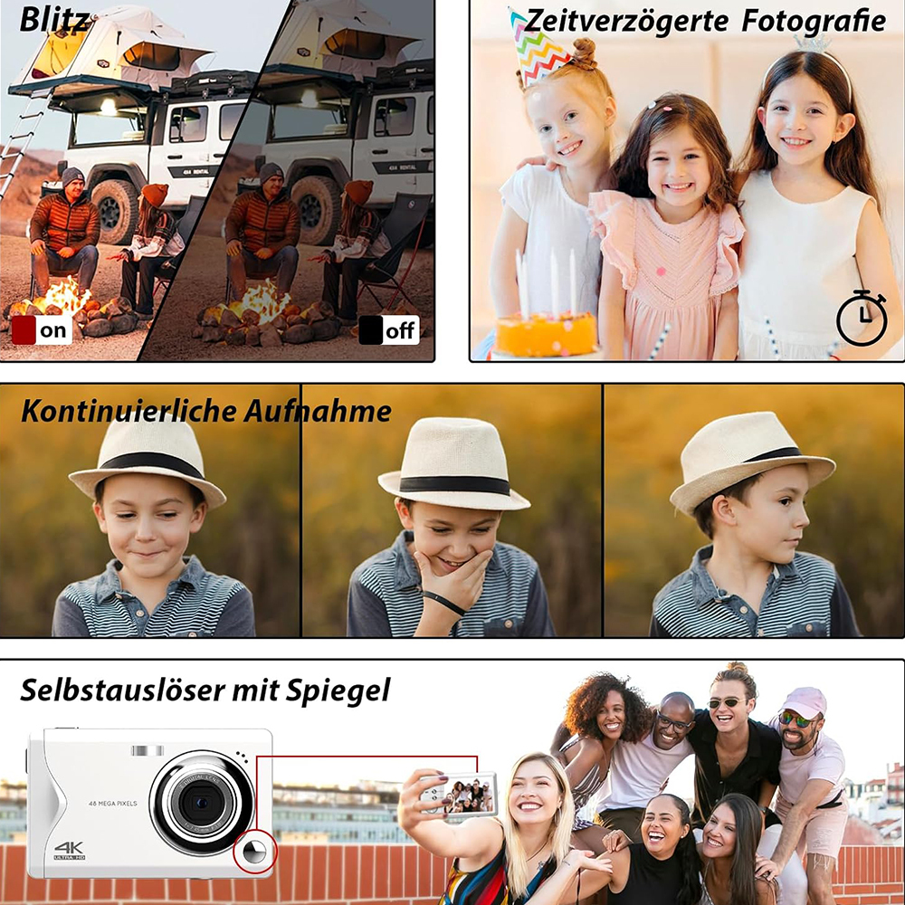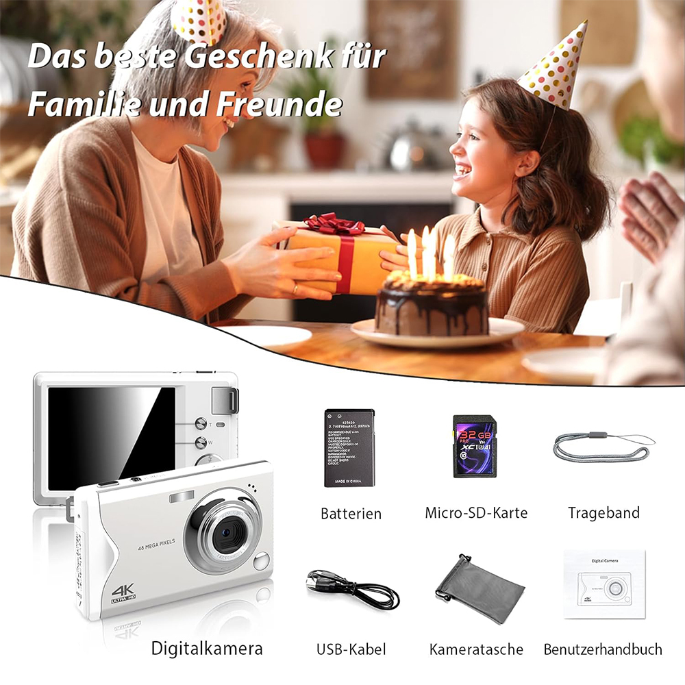Digital Camera, 1080 FHD Photo Camera, AutoFocus 4K Digital Camera, Portable 16X Digital Zoom Camera for Teenagers Men Women Beginners Girls Boys, White