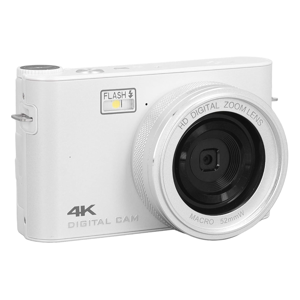 Digital Camera, 64MP 4K Vlogging Camera with 3.0inch TFT LCD Touchscreen, Auto Focus 18X Digital Zoom Portable YouTube Compact Point Shoot Camera, White