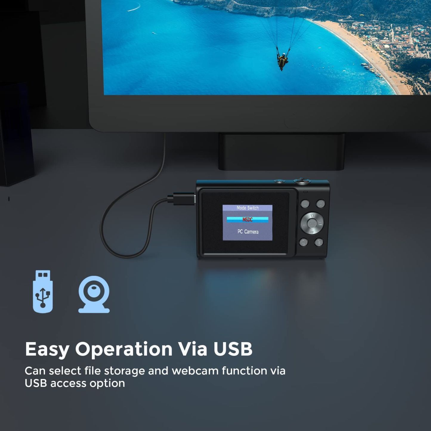 Webcam function & 2.8 inch IPS screen : The digital camera can be used as a webcam. With this 2.8 inch camera, you can use various
