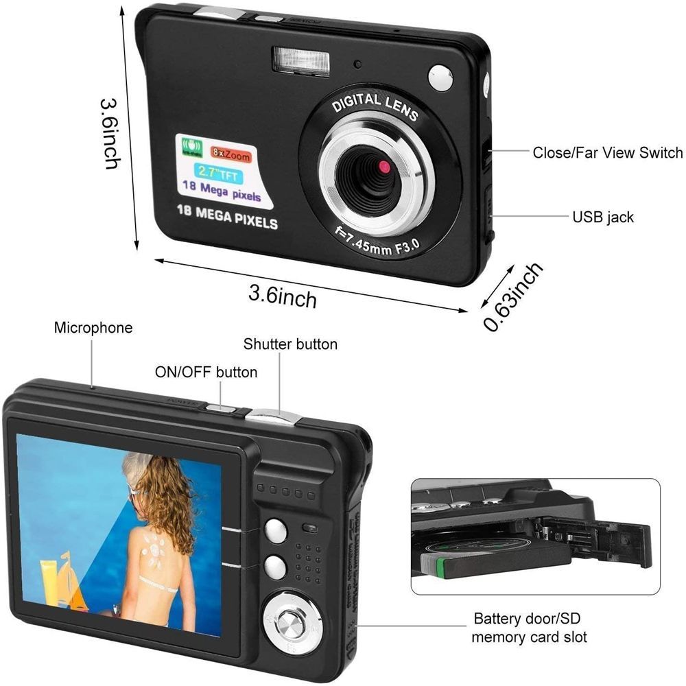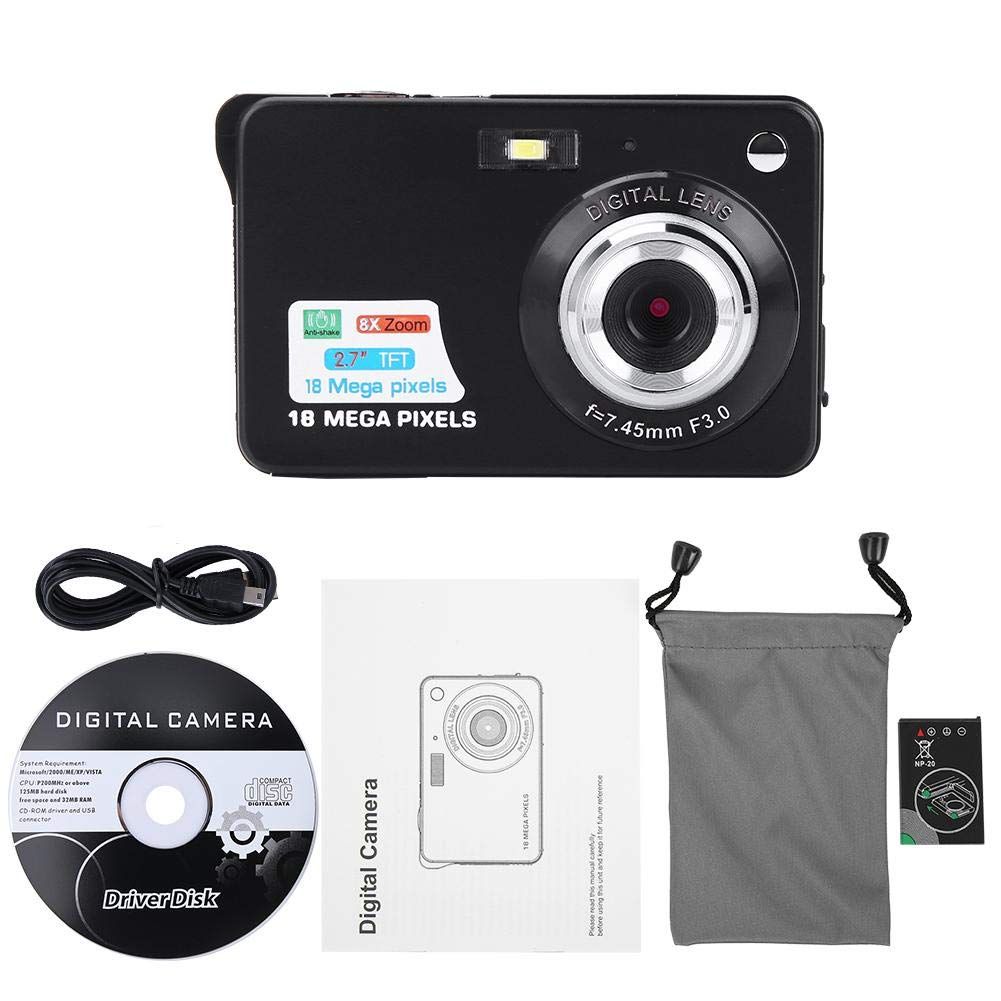 Digital Camera, Compact Camera 2.7 Inch 8X Digital Zoom Camera 18MP Teen Camera Digital Portable Mini Cameras Pocket Selfie HD Student Digital Camera Color Black