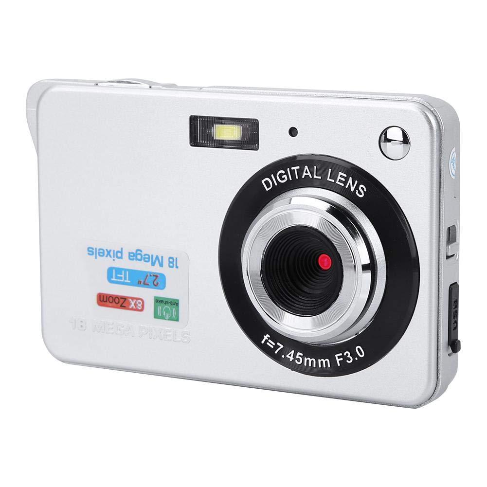 Digital Camera, Compact Camera 2.7 Inch 8X Digital Zoom Camera 18MP Teen Camera Digital Portable Mini Cameras Pocket Selfie HD Student Digital Camera Color Silver