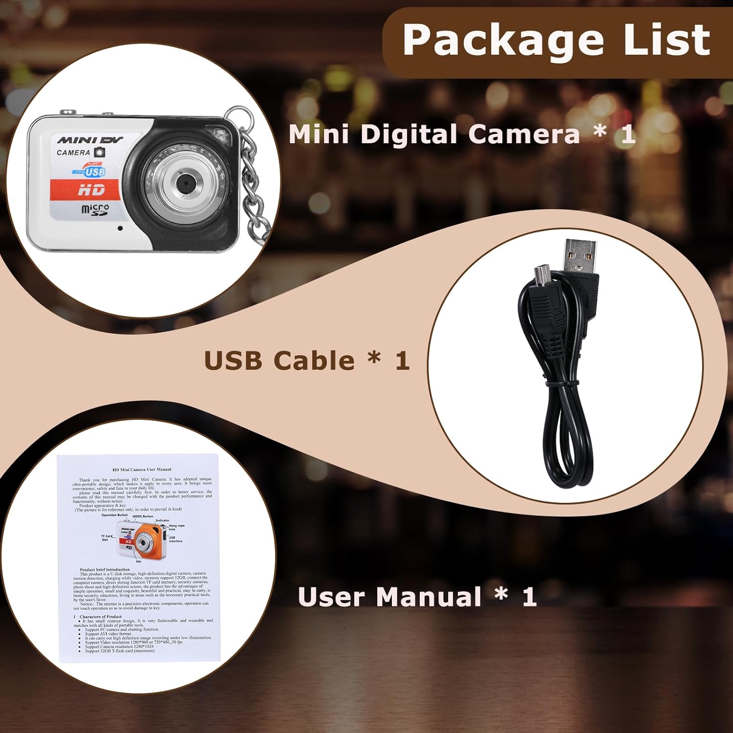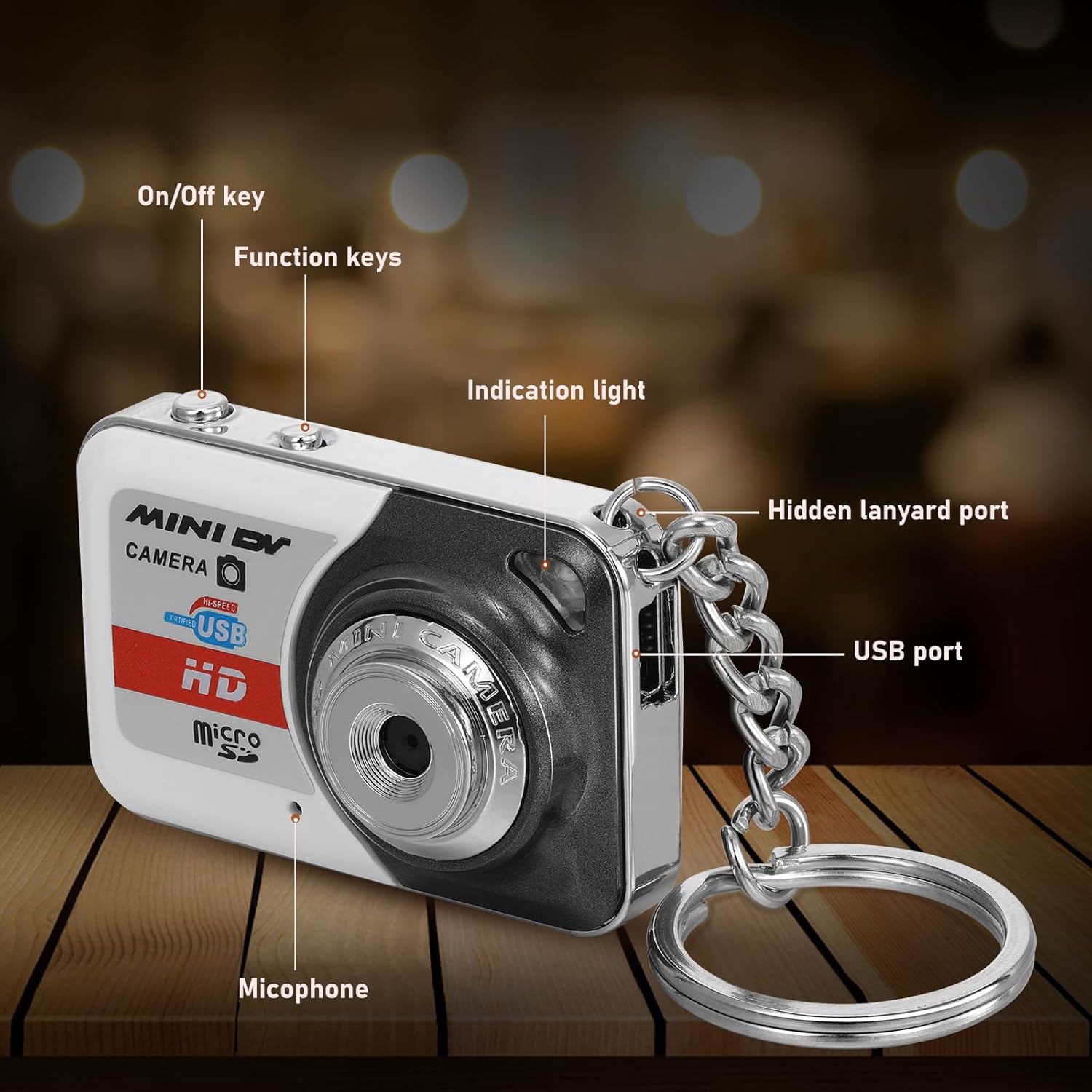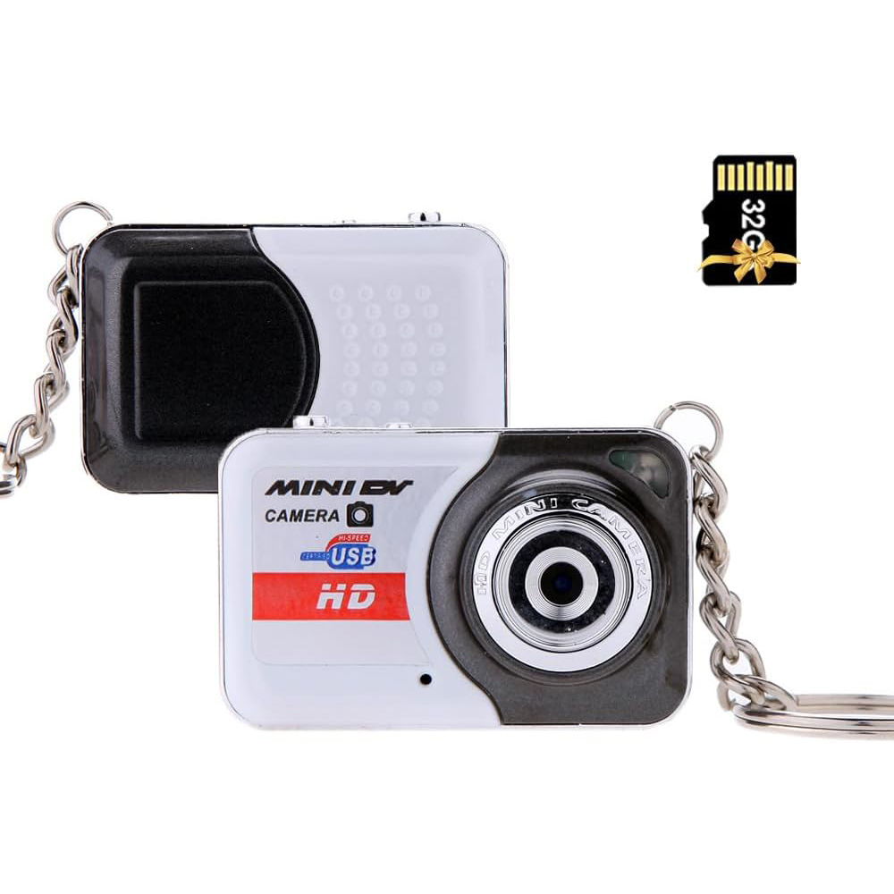 Digital Camera X6 Portable Camera Keychain, Ultra Mini High Denifition Kids Camera Mini DV with 32 GB Memory Card, Grey