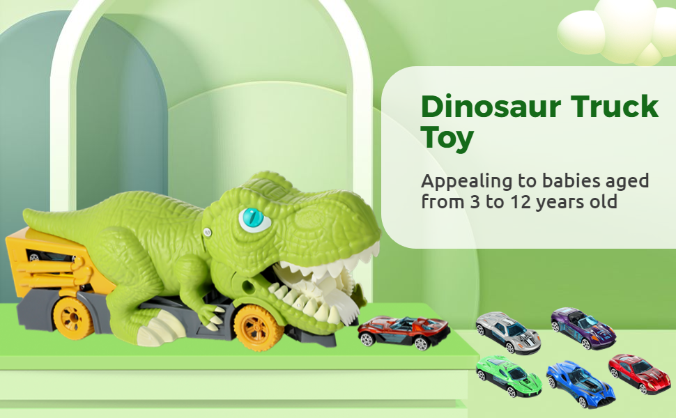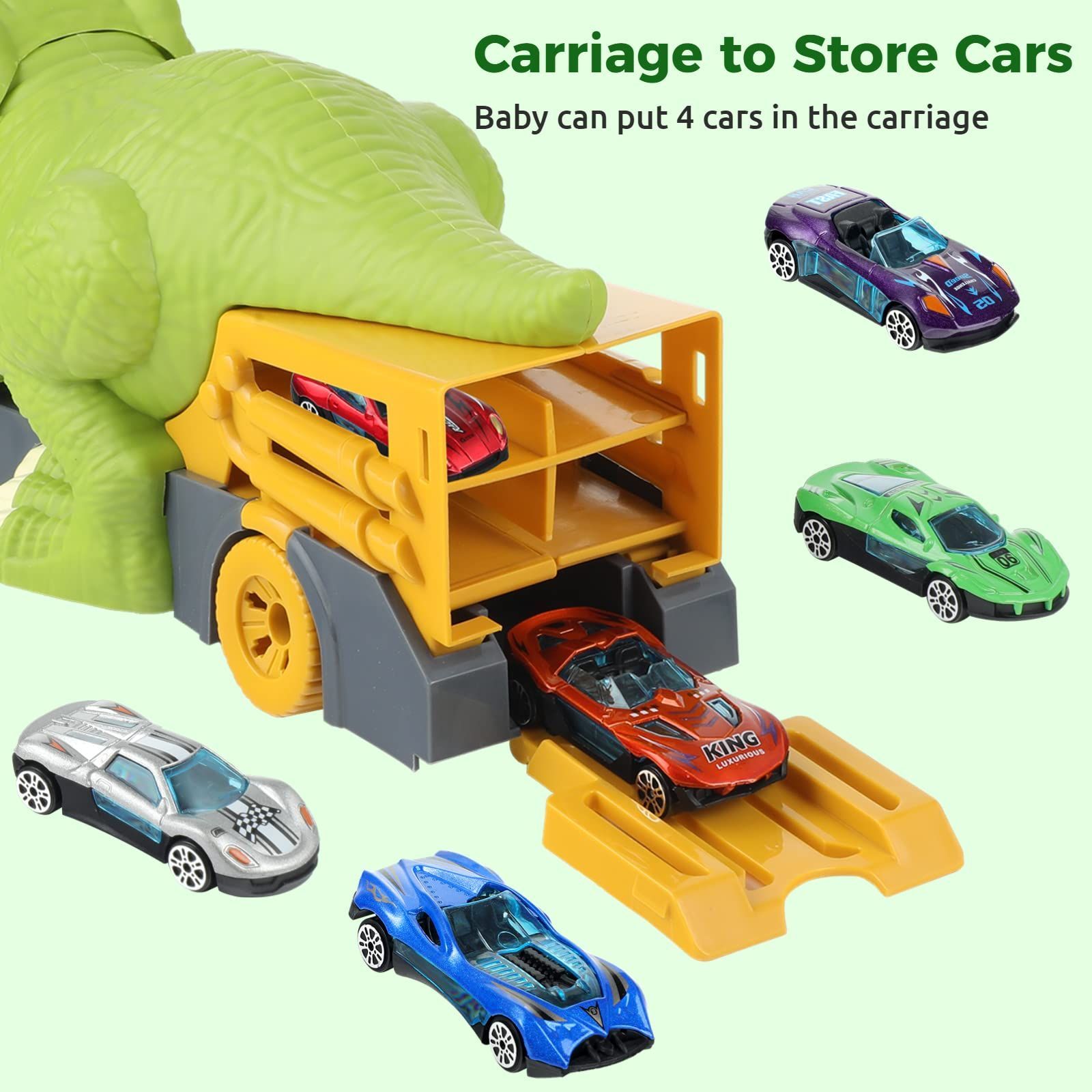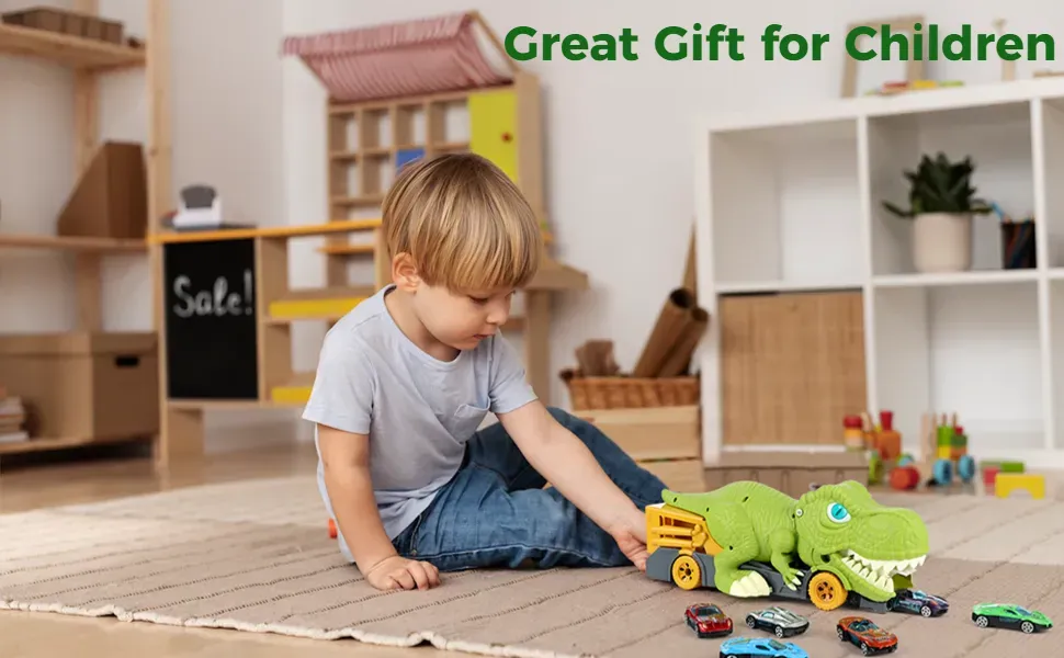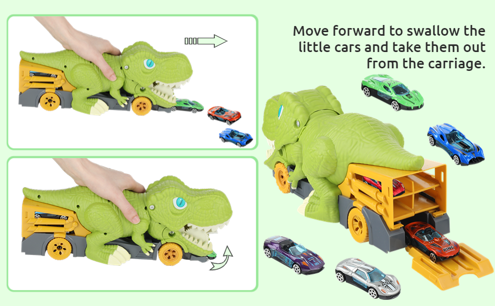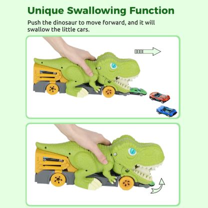 Dinosaur Eating Cars Truck for Boys Dinosaur Transport Carrier with 6 Alloy Car Toys, 2 in 1 Dino Devourer with Car Storage Eat and Poop Toys