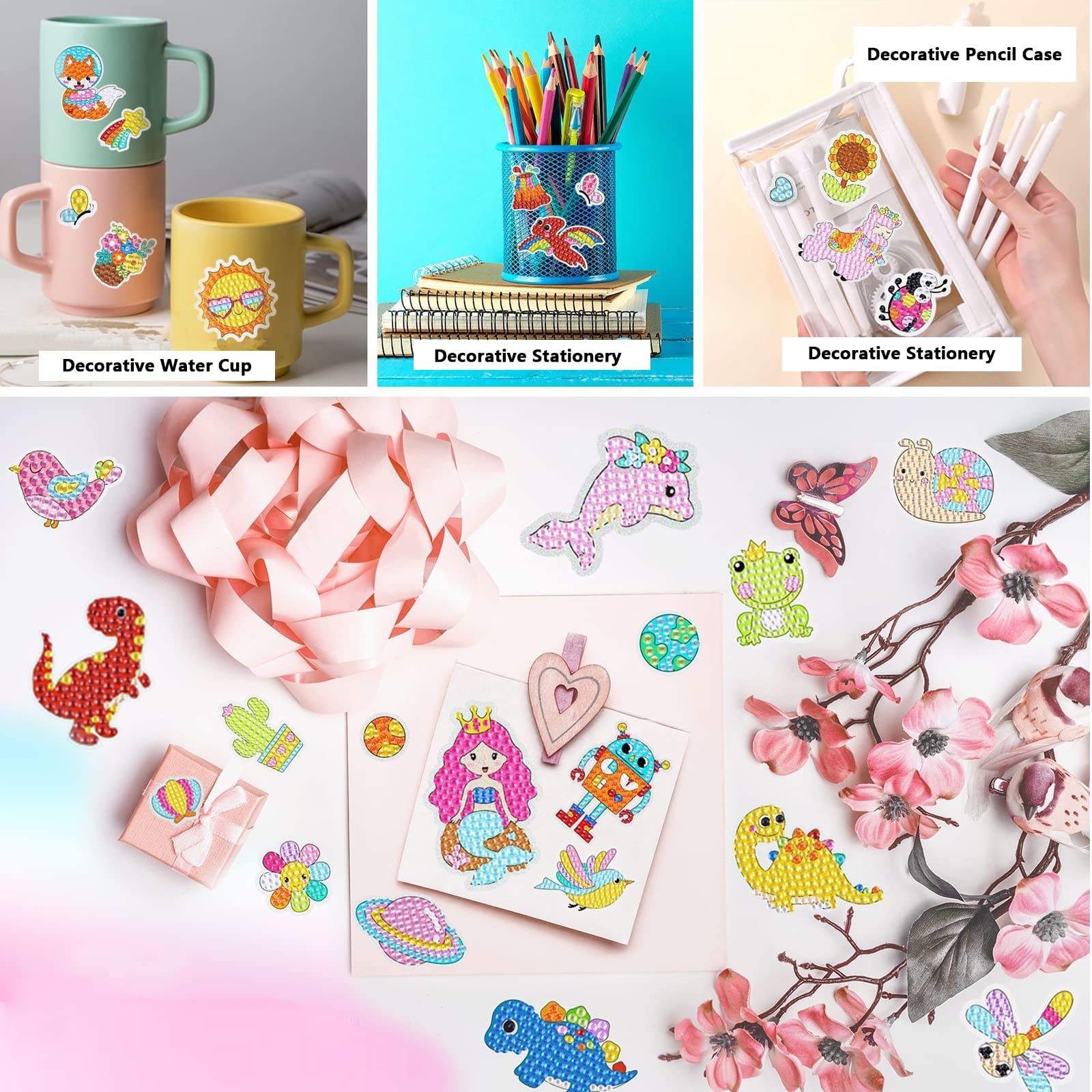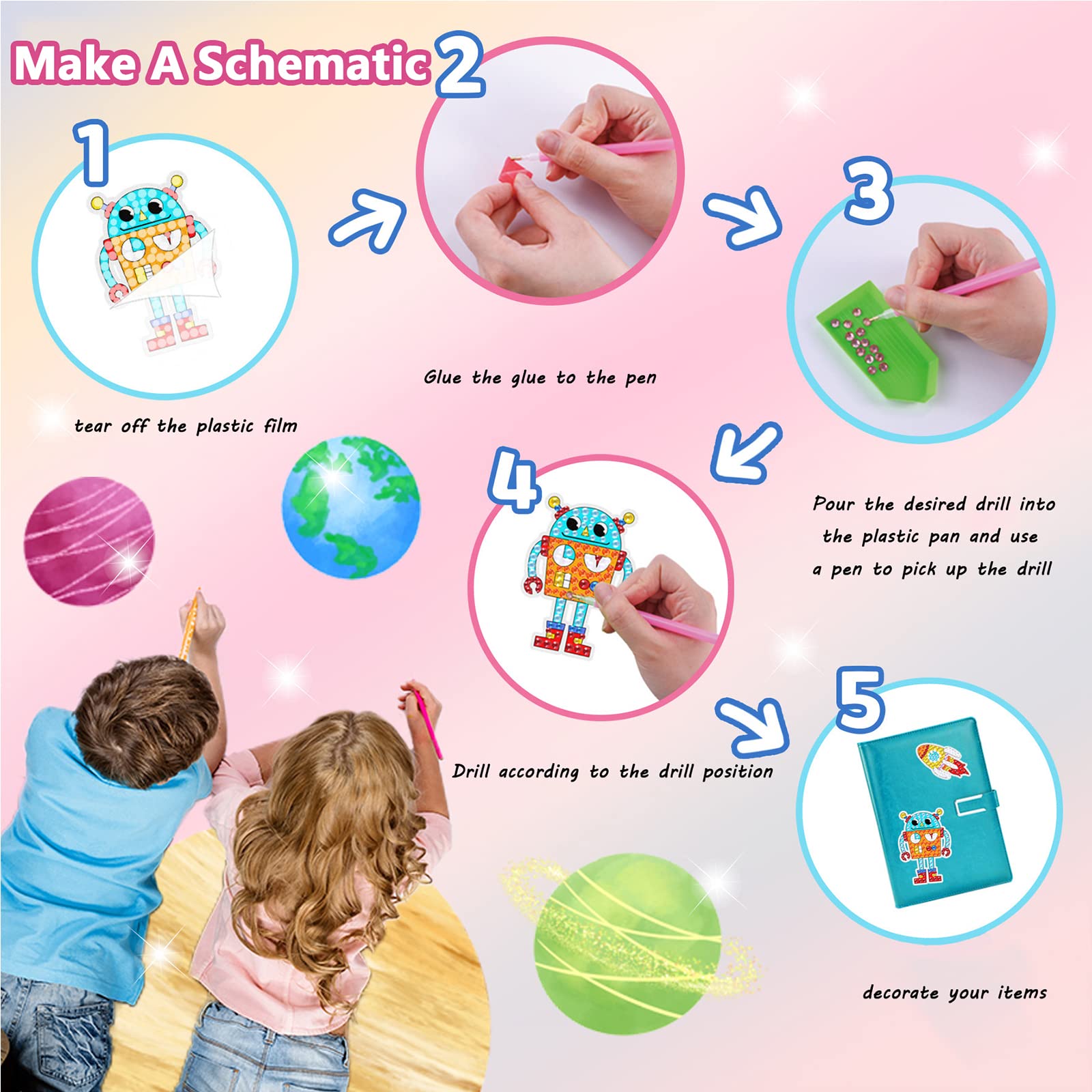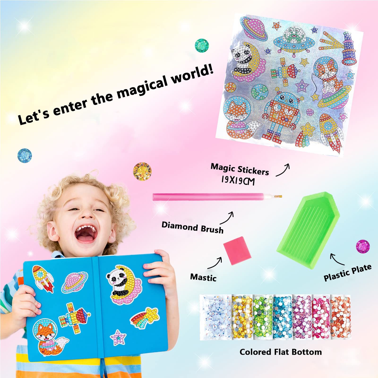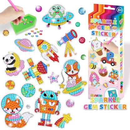 DIY Sparkle Gem Children's Kids 6 Stickers Cartoon Diamond Painting,Fun Arts and Crafts Kits Magical Cute Art 19x19cm Sparce
