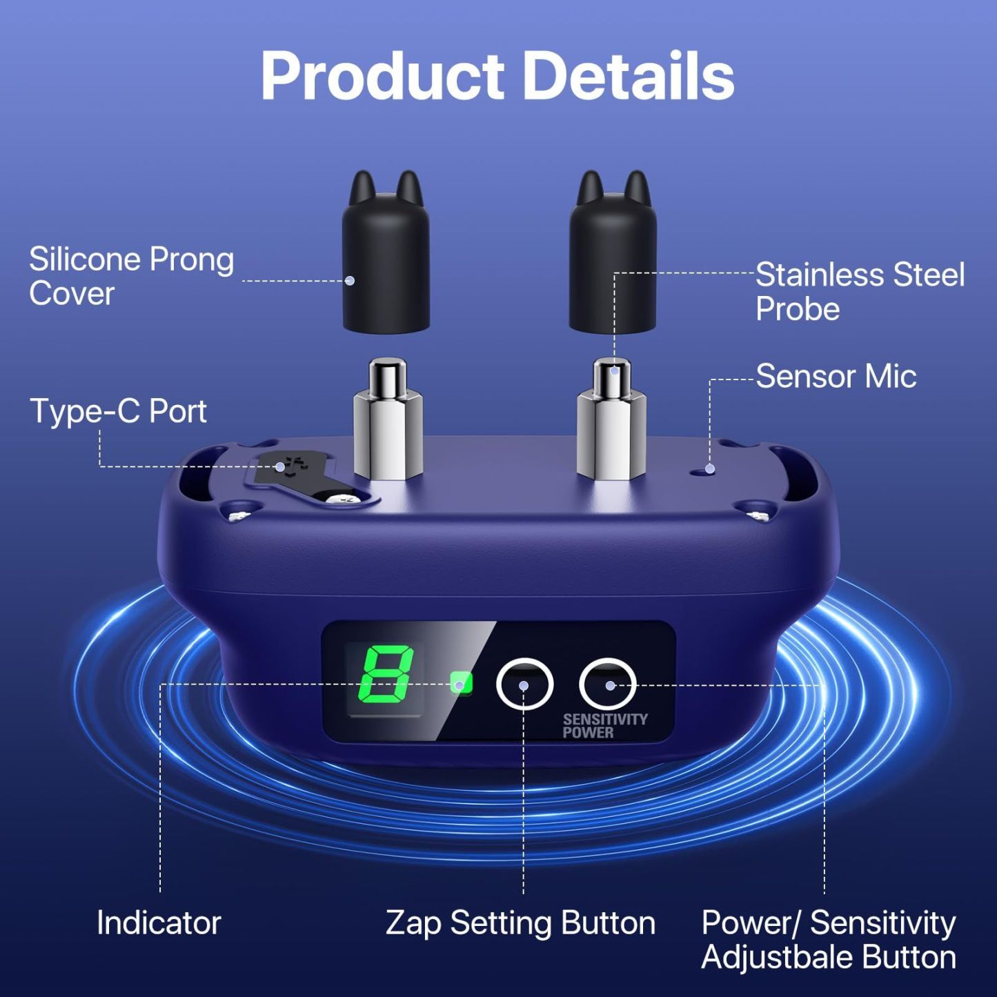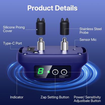 Dog Bark Collar for Large Medium Dogs,Automatic Barking Collar with 3 Training Mode,Rechargeable Anti Bark Collar with 8 Adjustable Sensitivity,Blue