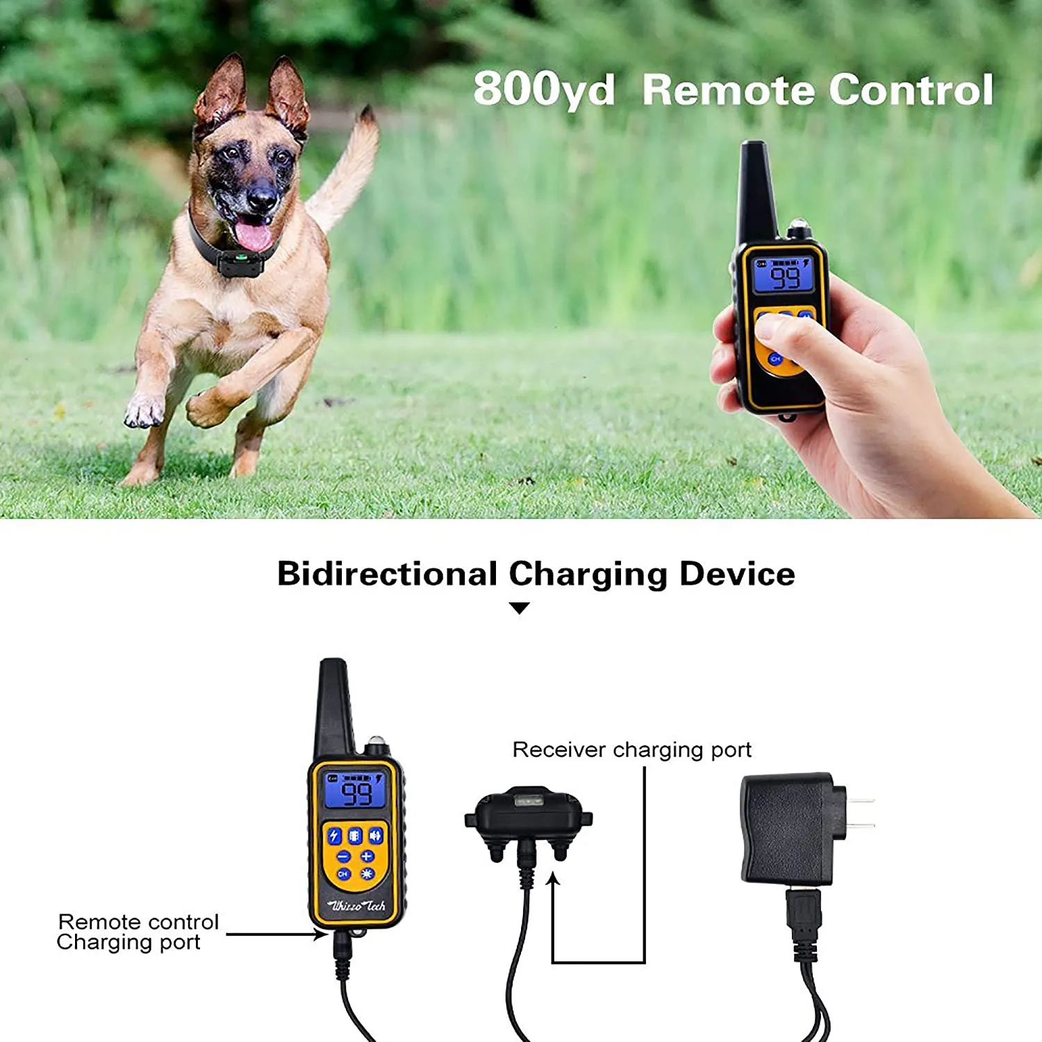 Dog Shock Training Collar Rechargeable Waterproof 875 Yards Remote Control E-Collar (for 3 Dogs)