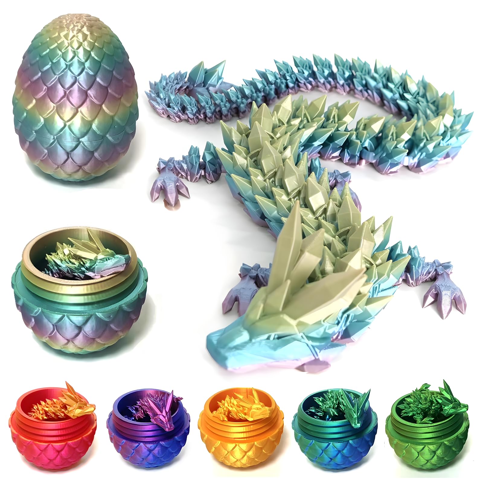 Easter Dragon Egg 3D Printed Dragon Egg Articulated Dragon Crystal Dragon with Dragon Fidget Dragon Egg Toy Executive Desk Toys Fidget Dragon Toys