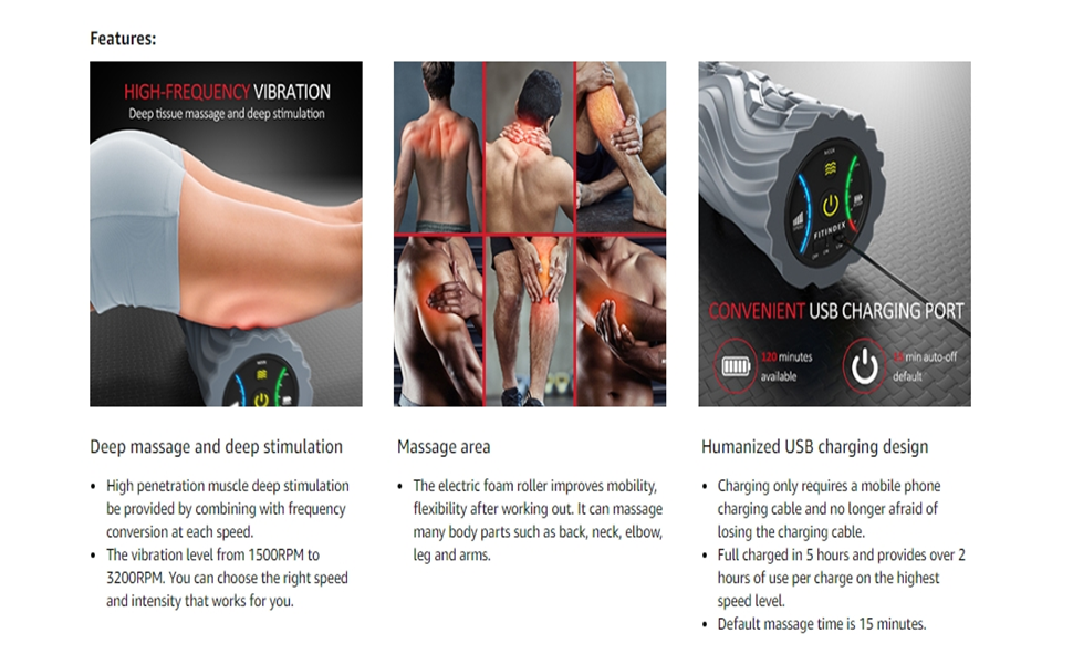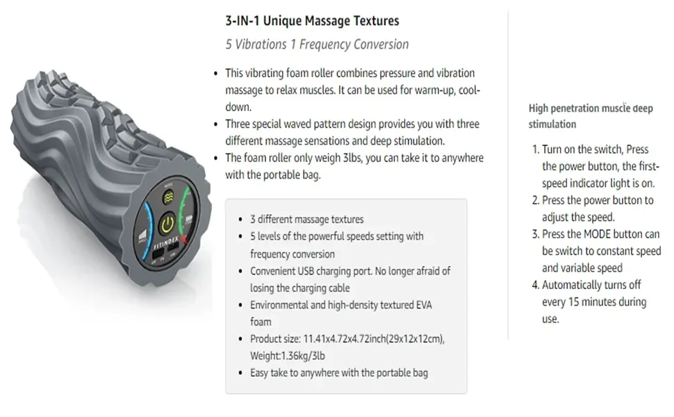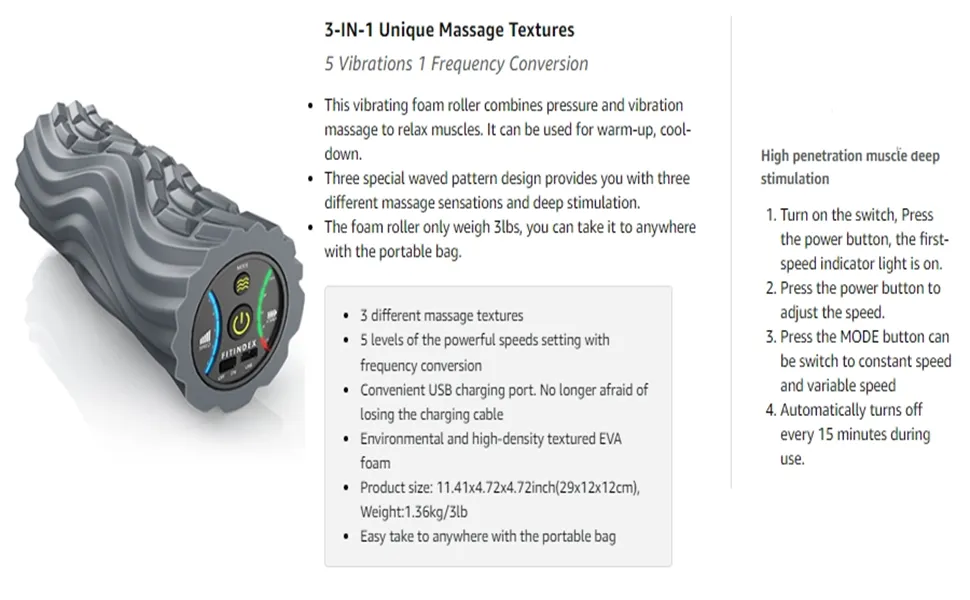 Electric Foam Roller Vibrating Muscle Relax Portable 5 Speed Fitness Deep Massage Rechargeable Yoga Exercise Recovery Tool