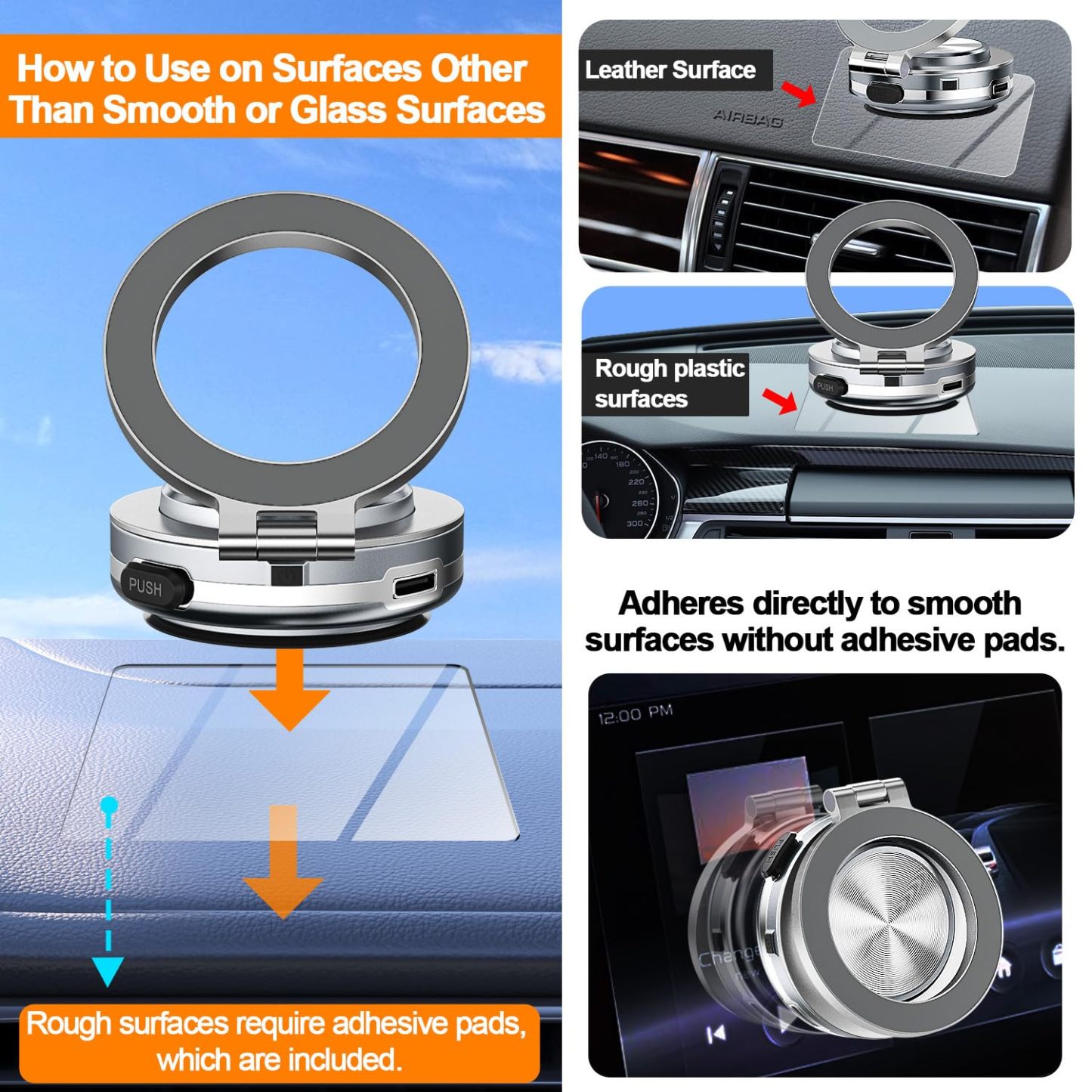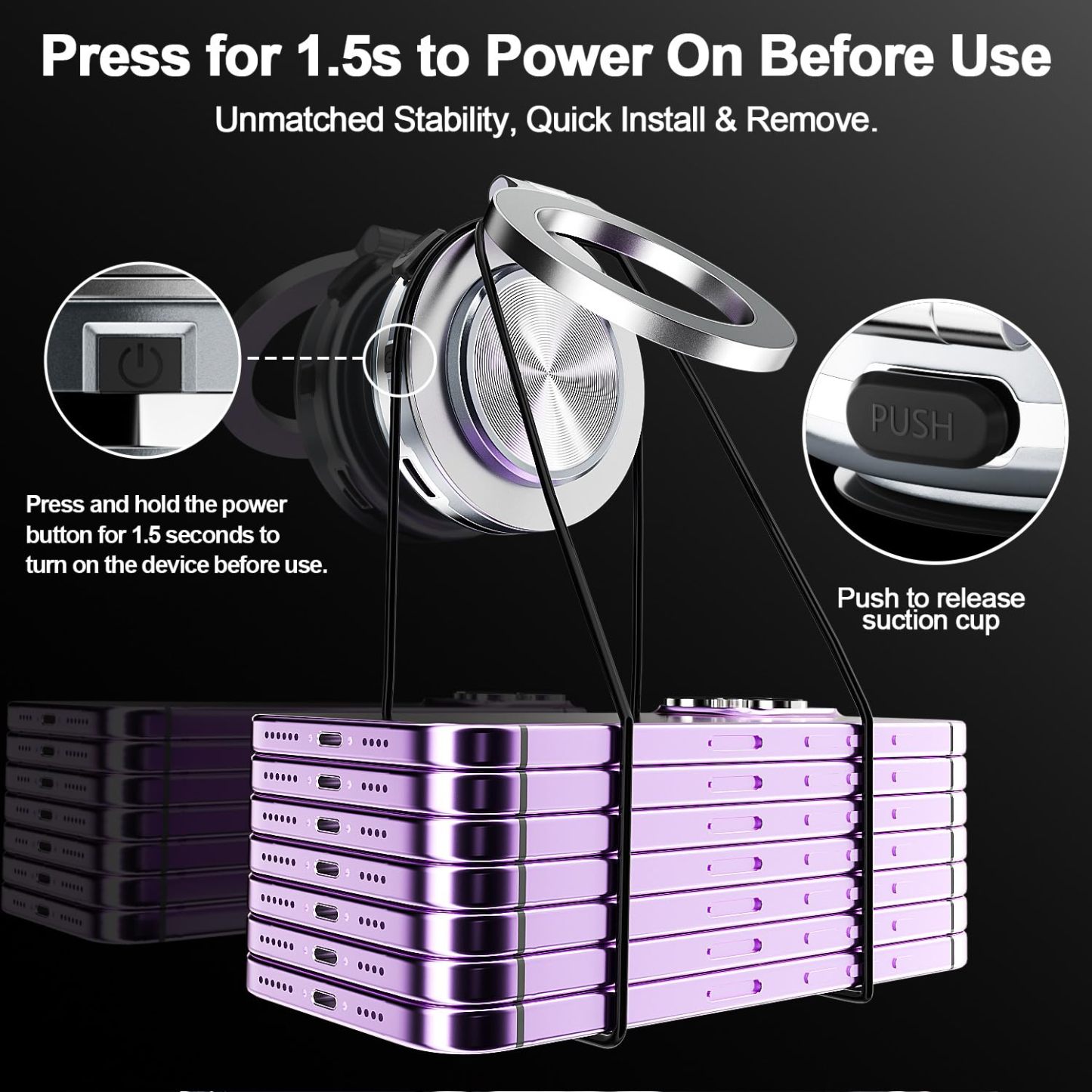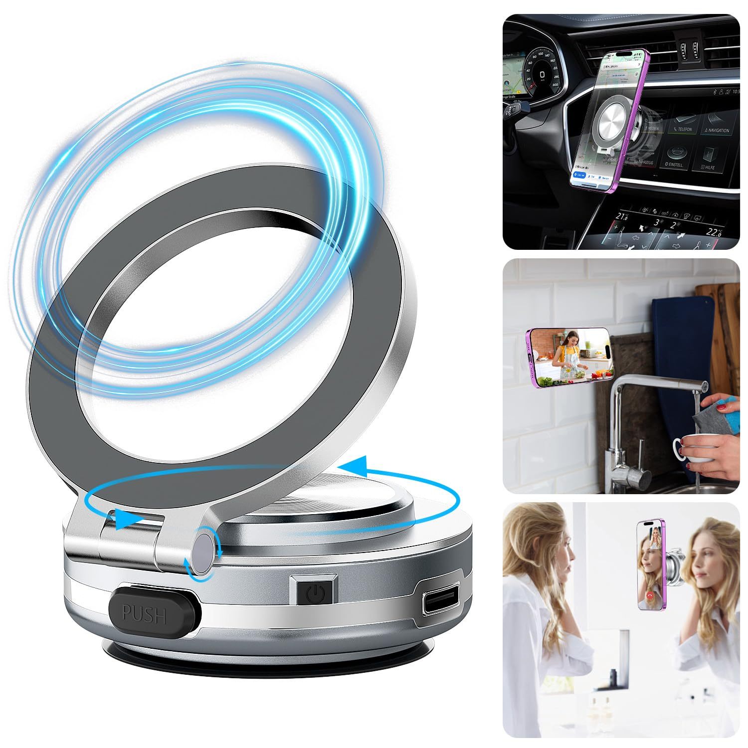 Electric Suction Cup Vacuum Magnetic Phone Holder 360 Degree Rotatable Compatible with MagSafe Magnet Strong Vacuum Suction Cell Phone Car Mount(Silver)