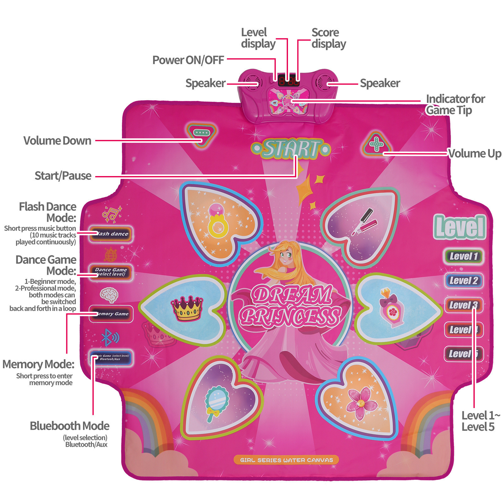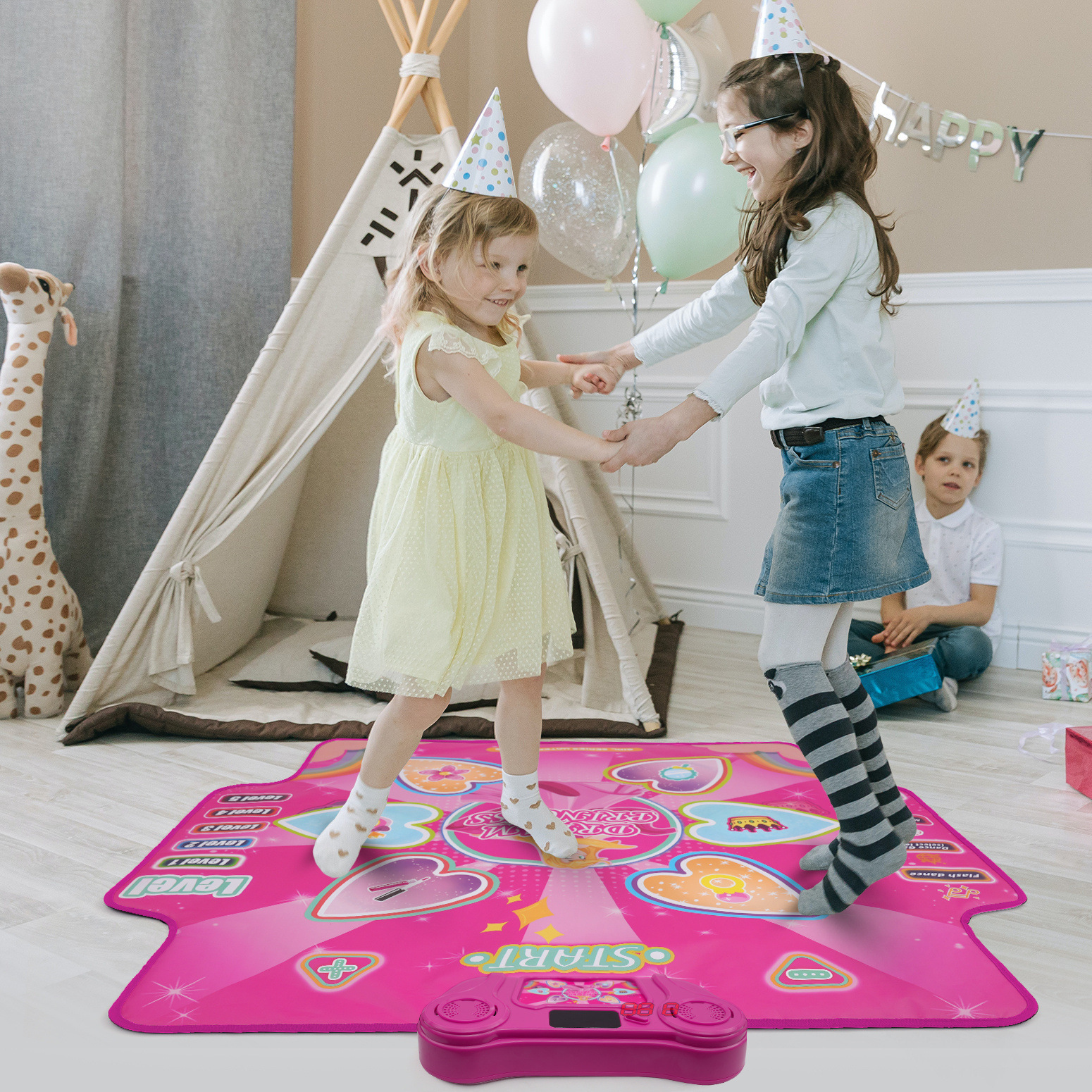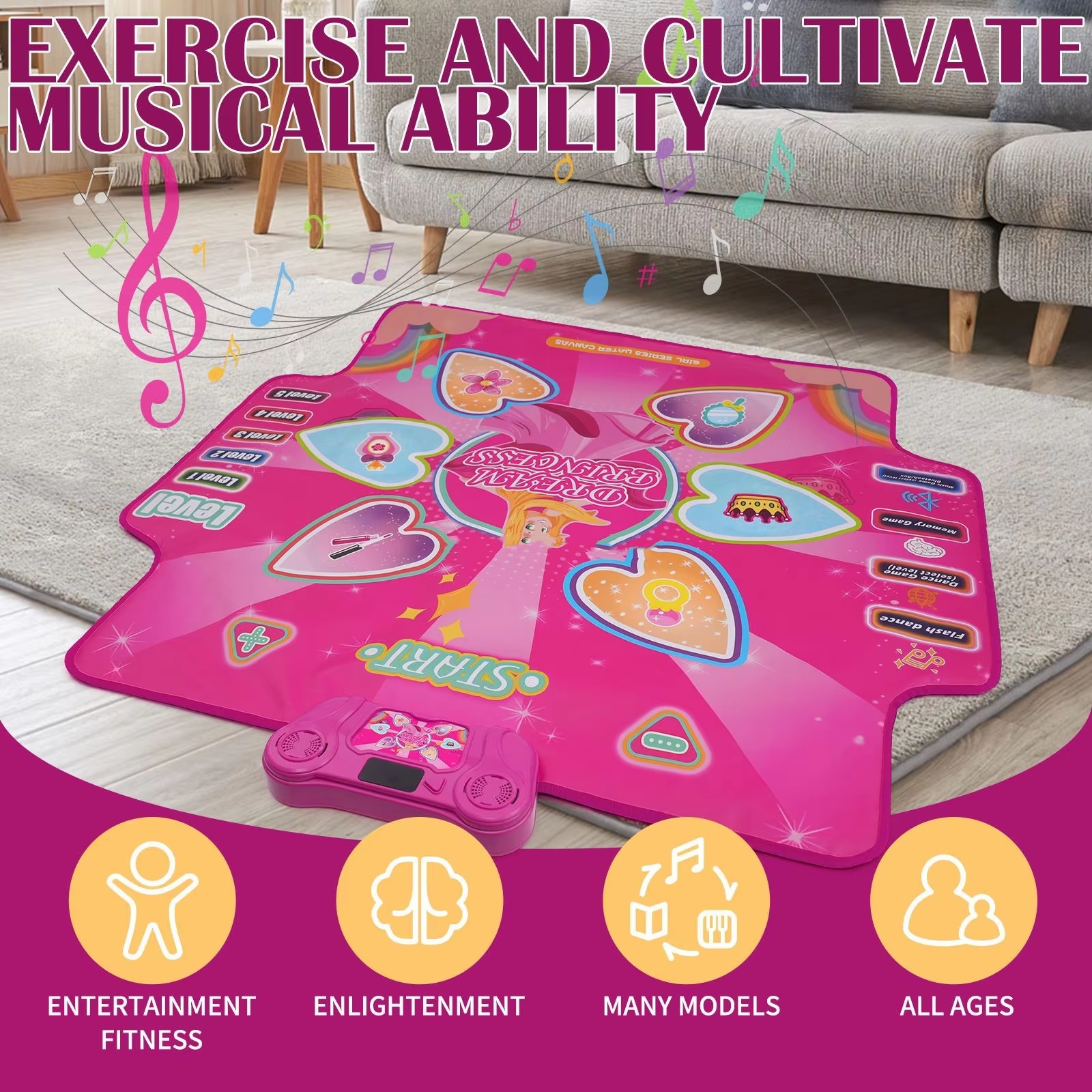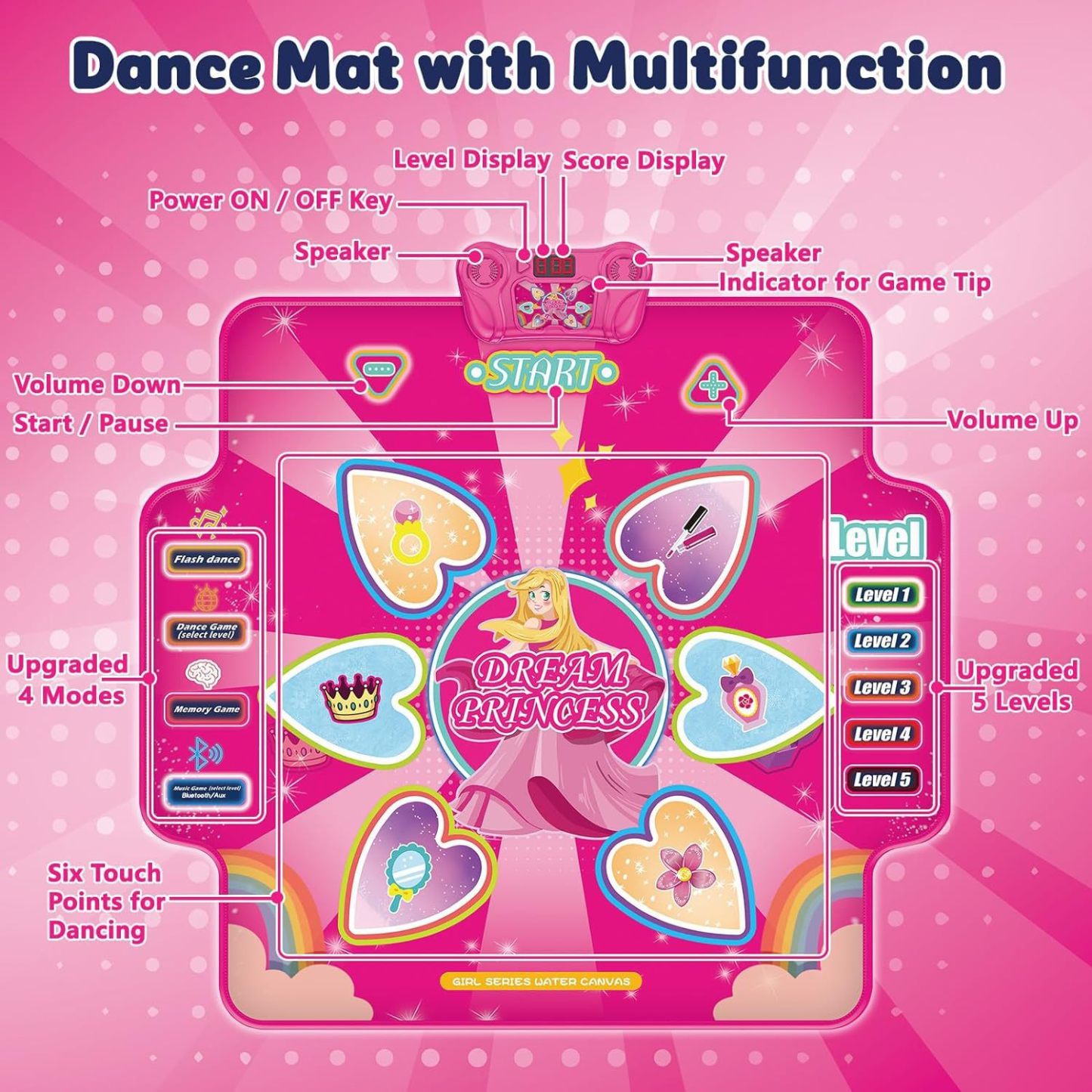 Electronic Dance Mat with Glowing Light up 6 Button Interactive Music Dance Mixer Rhythm Step Play Mat with 4 Game Modes for Boy and Girl