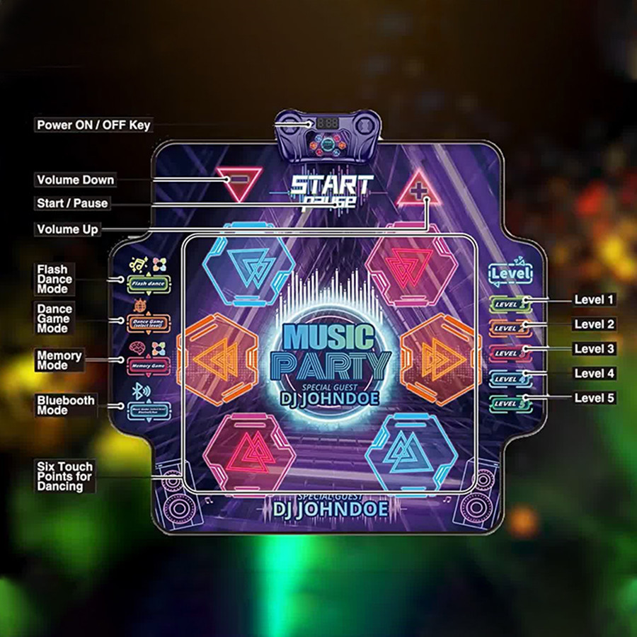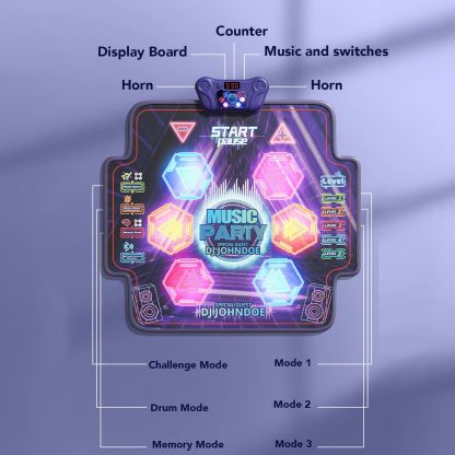 Electronic Dance Mat with Glowing Light up 6 Button Interactive Music Dance Mixer Rhythm Step Play Mat with 7 Game Modes for Boy and Girl