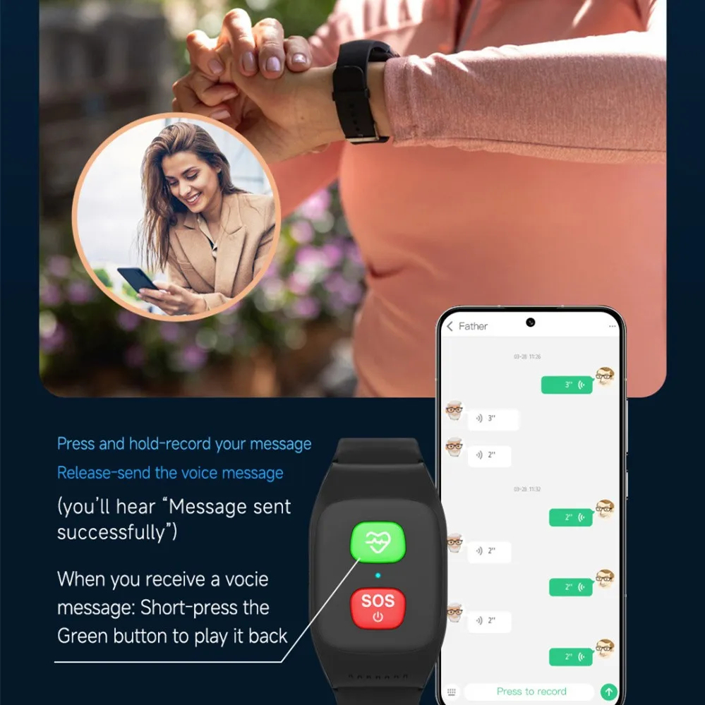Emergency Bracelet Seniors with Fall Detection SOS Bracelet Seniors Emergency Call with Emergency Call Button and GPS Location