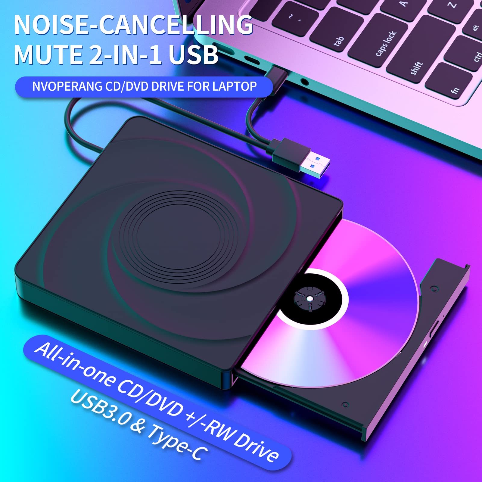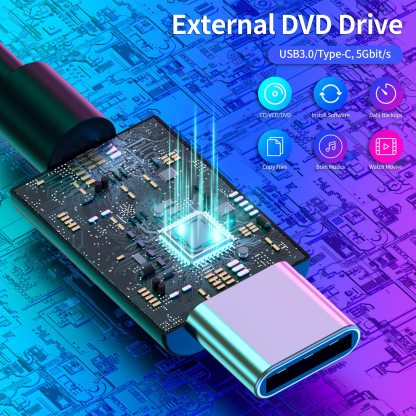 External CD/DVD Drive for Laptop,USB 3.0 & Type-C Mute CD Burner,Portable CD DVD +/-RW Drive Optical Drive Players Readers,Compatible with Desktop MacBook Notebook with Windows Linux OS
