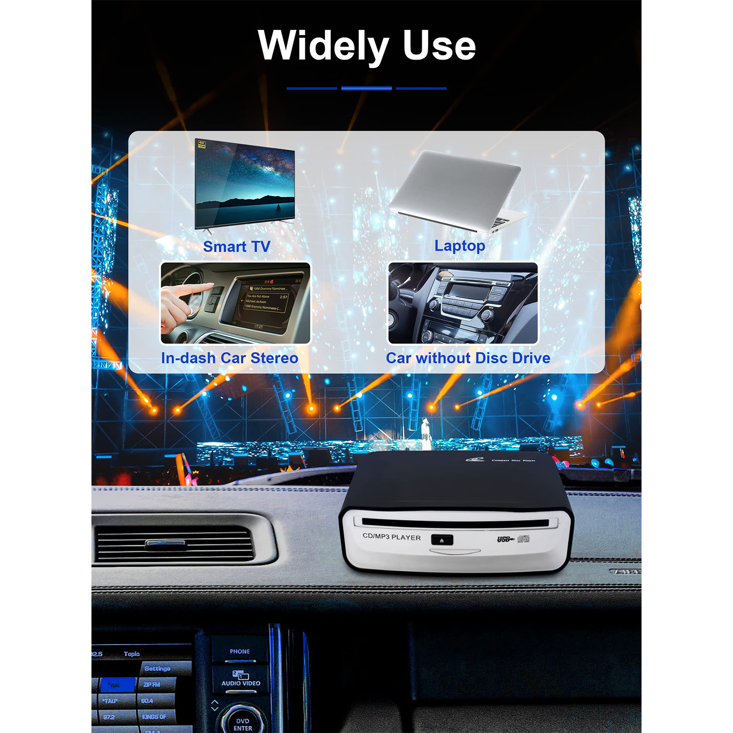 External Universal CD Player for Car,Portable CD Player,Plugs into Car USB Port,Laptop,TV,Mac,Computer,for Android 4.4 and Above Navigation
