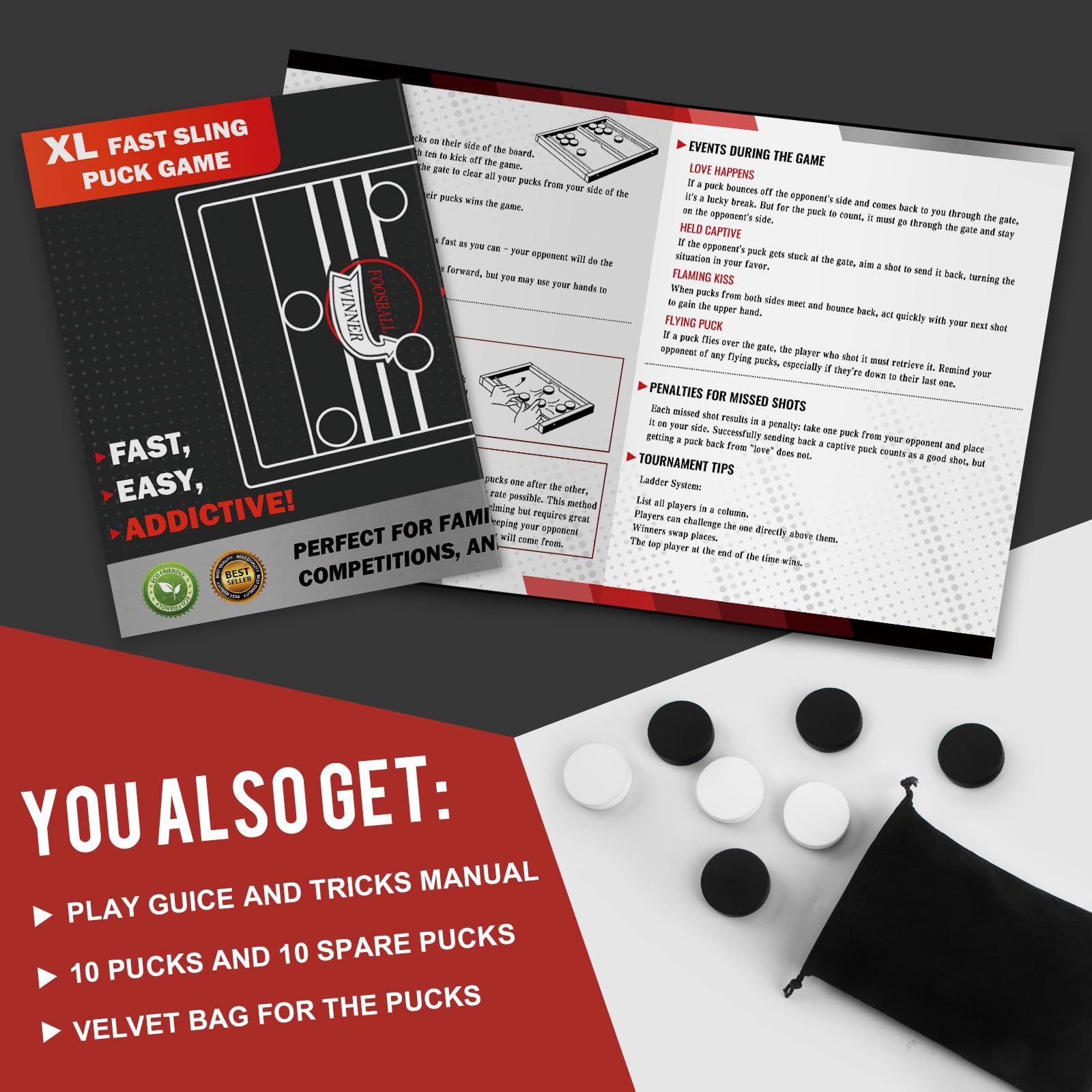 Extra Large Wooden Fast Sling Puck Game,Super Sling Hockey Table for Family Game Night & Parties,Foosball Winner String Puck Game with 20 Pucks