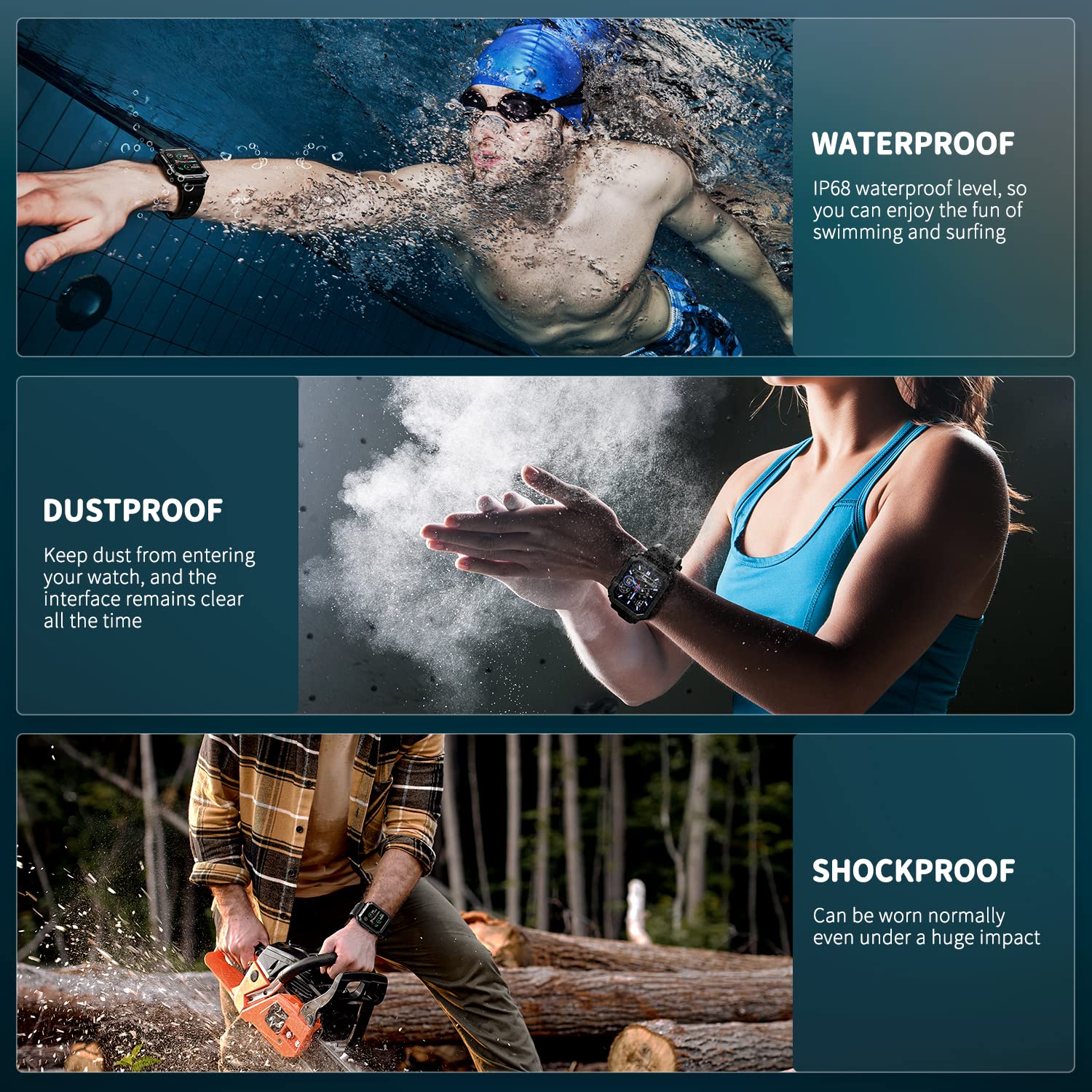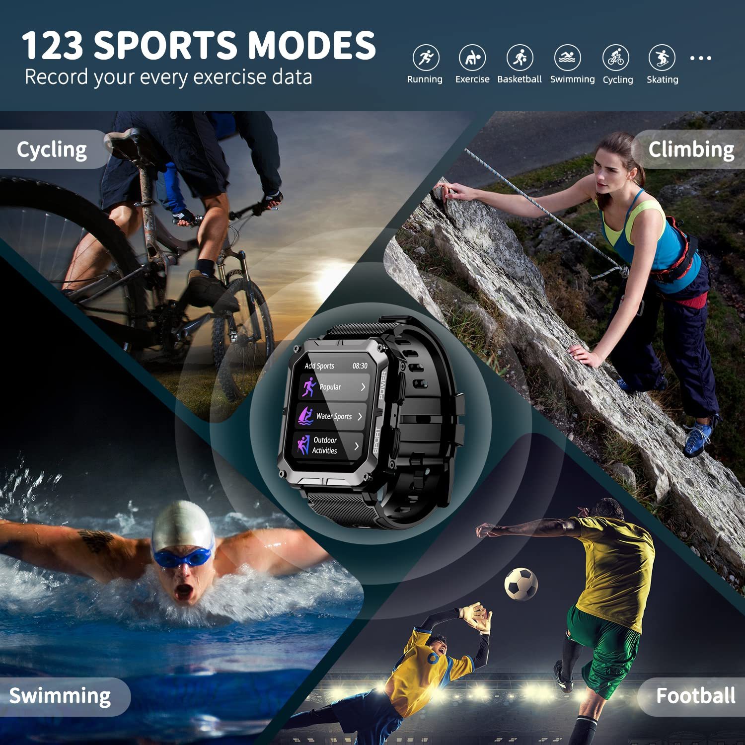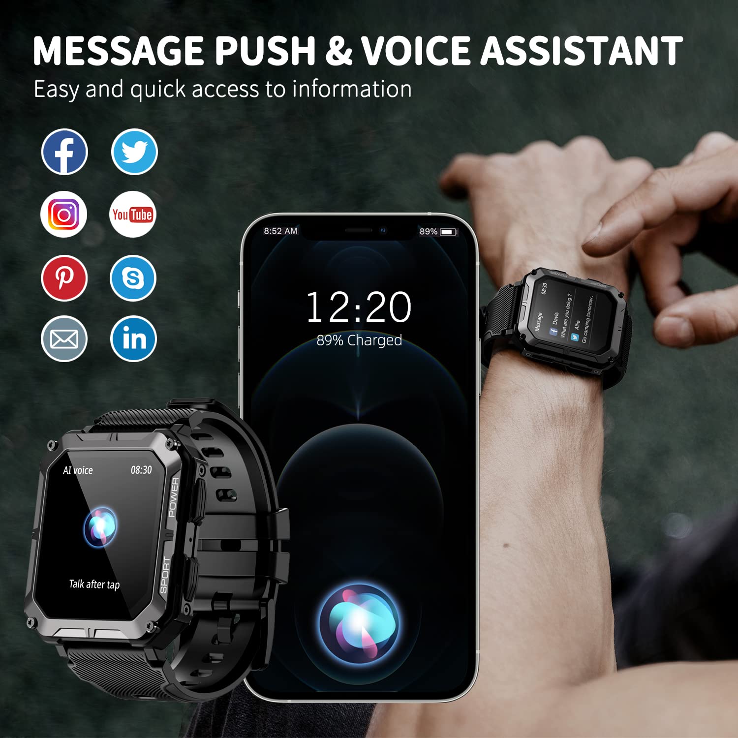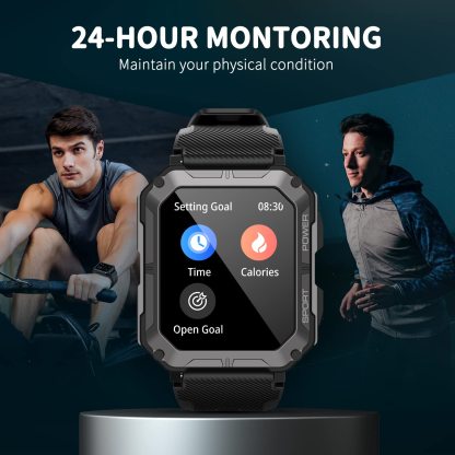 Fitness Tracker Waterproof Bluetooth Make Answer Call Men Smart Watch Rugged 1.83-Inch Tactical Outdoor Sports Android iOS Black