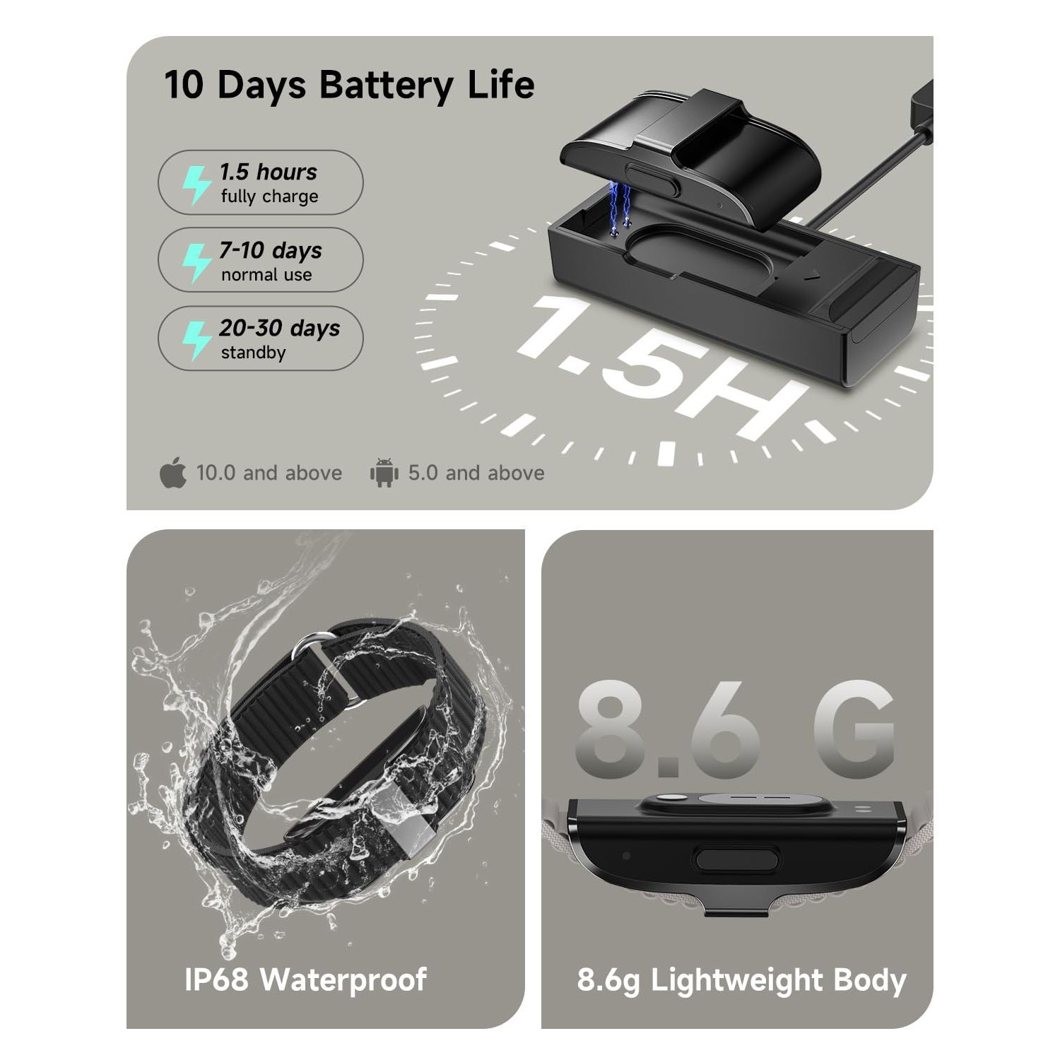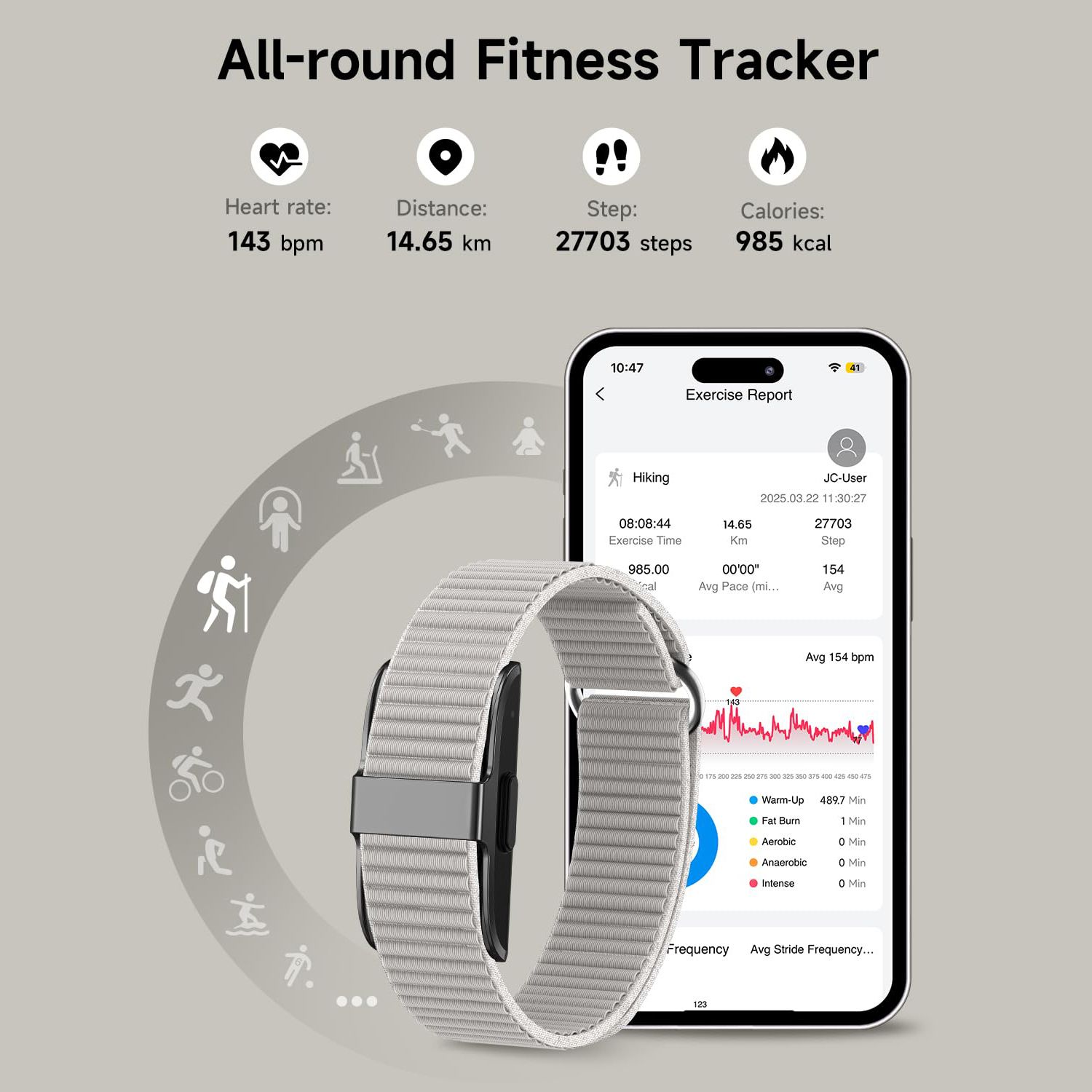 Fitness Tracker,Wearable Activity Step Tracker,Continuous Sleep SpO2 Stress Monitor,IP68 Multiple Sports Modes Watch,Free App for Android iPhone