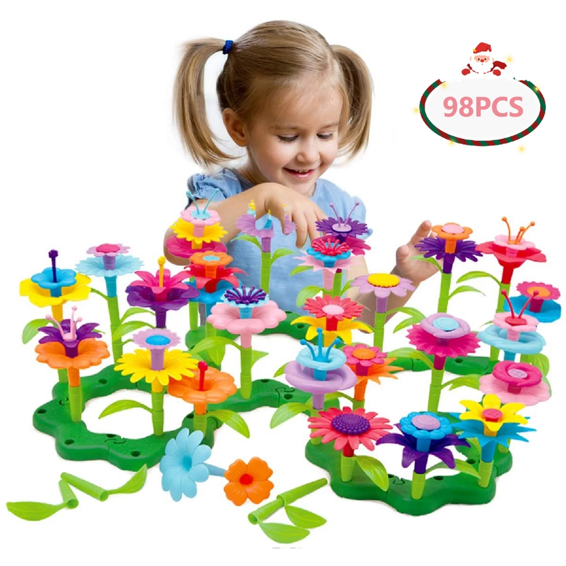 Flower Building Toys, 98 PCS Kids Garden Building Block, Creative Pretend Gardening Toys Early Educational Toy for Girls Christmas Birthday Gift
