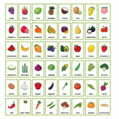 Fruit Vegetable Montessori English Word Learning Flash Cards for Kids,Early Educational Flashcards,Classroom Supplies,Teaching Materials For Teachers