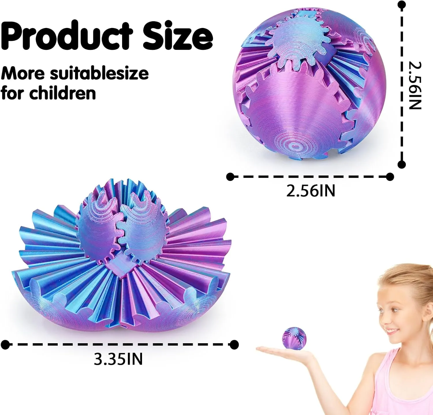 Gear Ball 3D Printed Spin Ball or Cube Fidget Toy,Gear Sphere Fidget Toy,Fidget Ball Gear Toy,Stress Ball GearSphere Desk Toy (Light Blue,6cm)