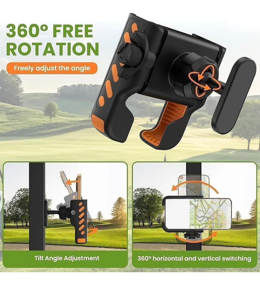Golf Cart Phone Holder,Adjustable Cellphone Holder Phones Stand 360 Rotation Golf Cart Phone Mount for Golf Cart Yacht Motorcycle Gym