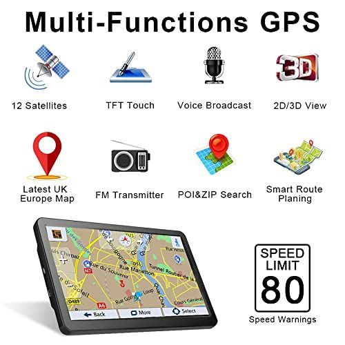 GPS Navigation for Truck RV Car,7 Inch 8G+256M Multi-functional touch screen Truck GPS Commercial Drivers, Free Lifetime Map Updates, Speed Warning (Black)