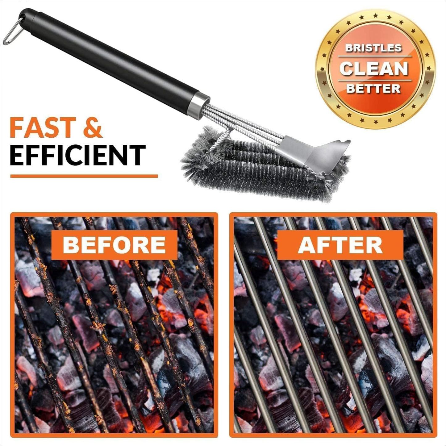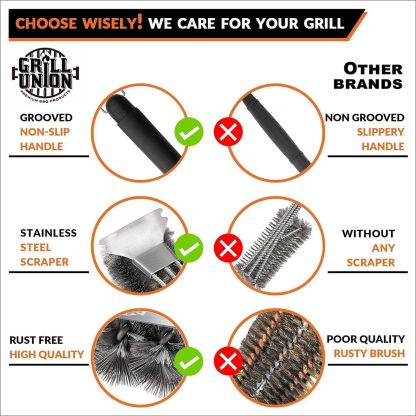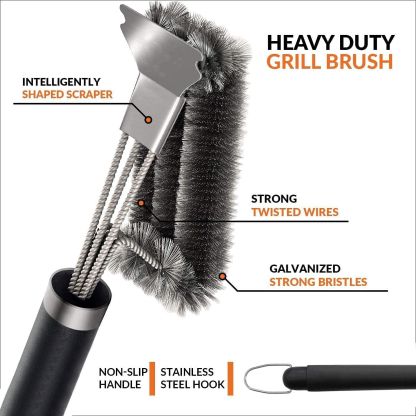 Grill Brush, Grill Cleaning Brush with Extra Long Stainless Steel bristles for BBQ Grill, Gas Grill, Charcoal Gril