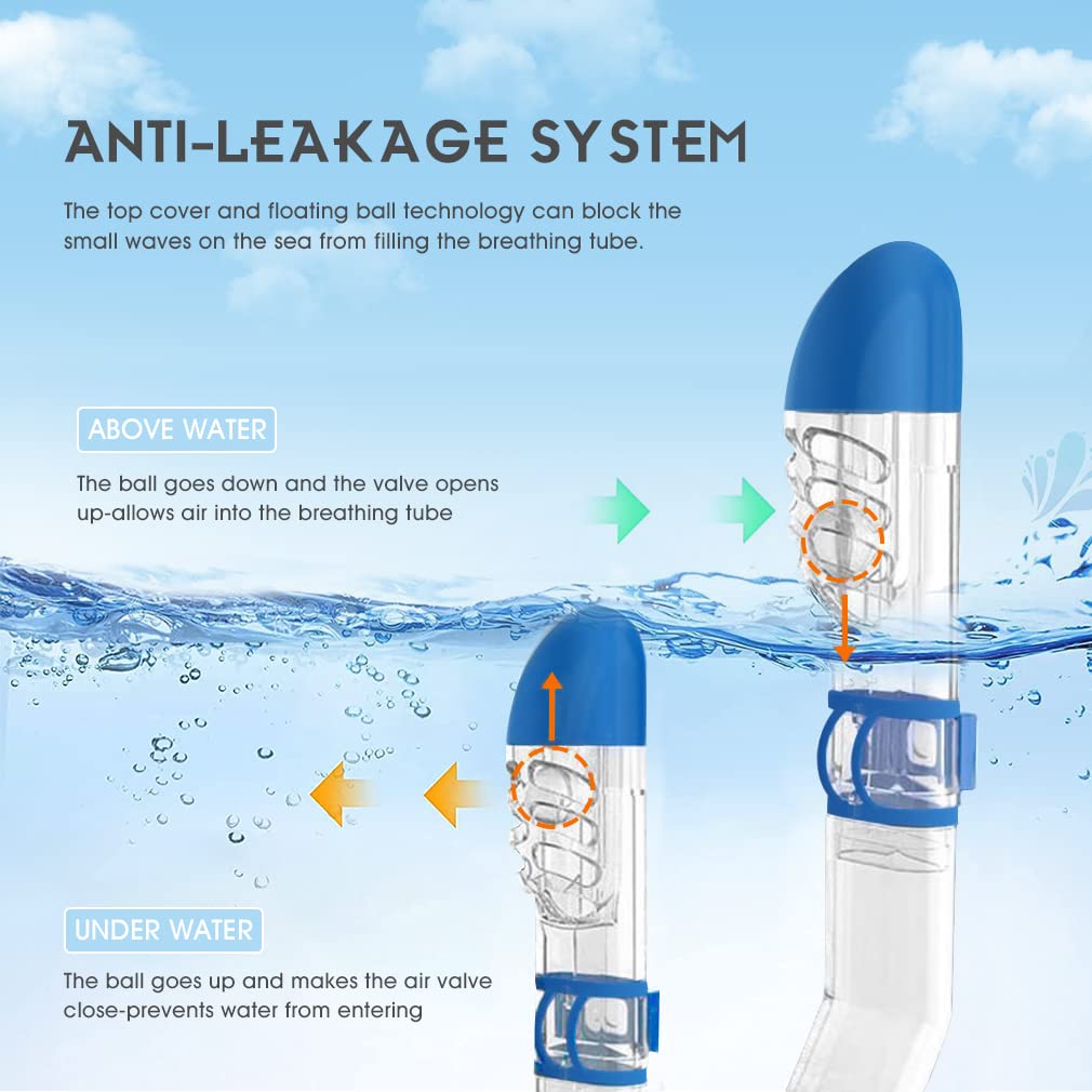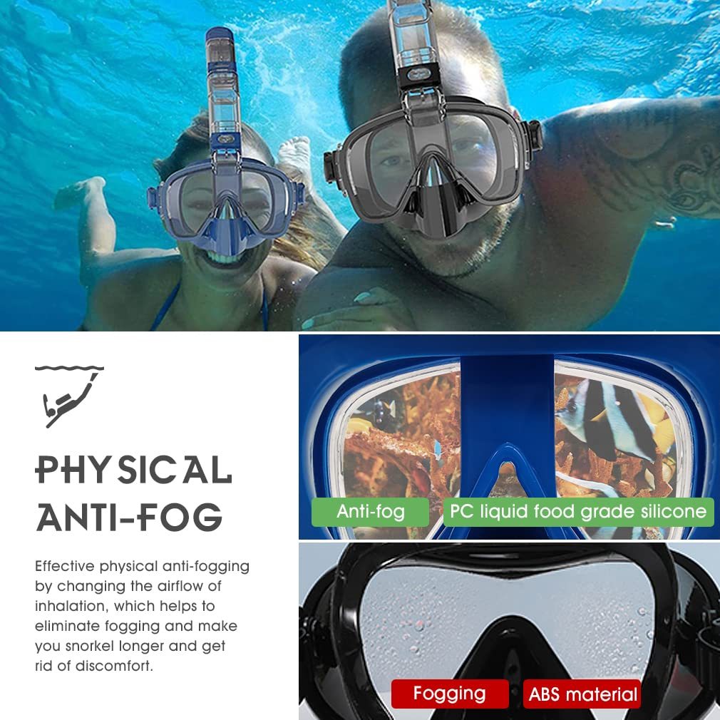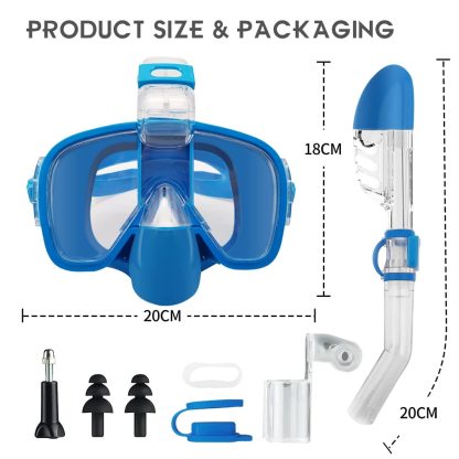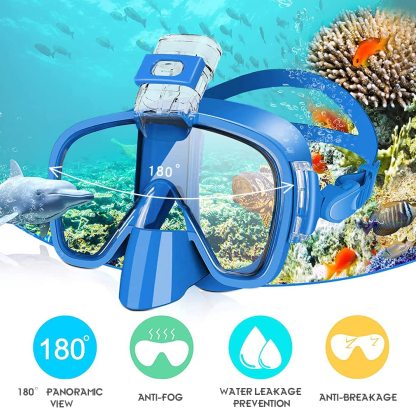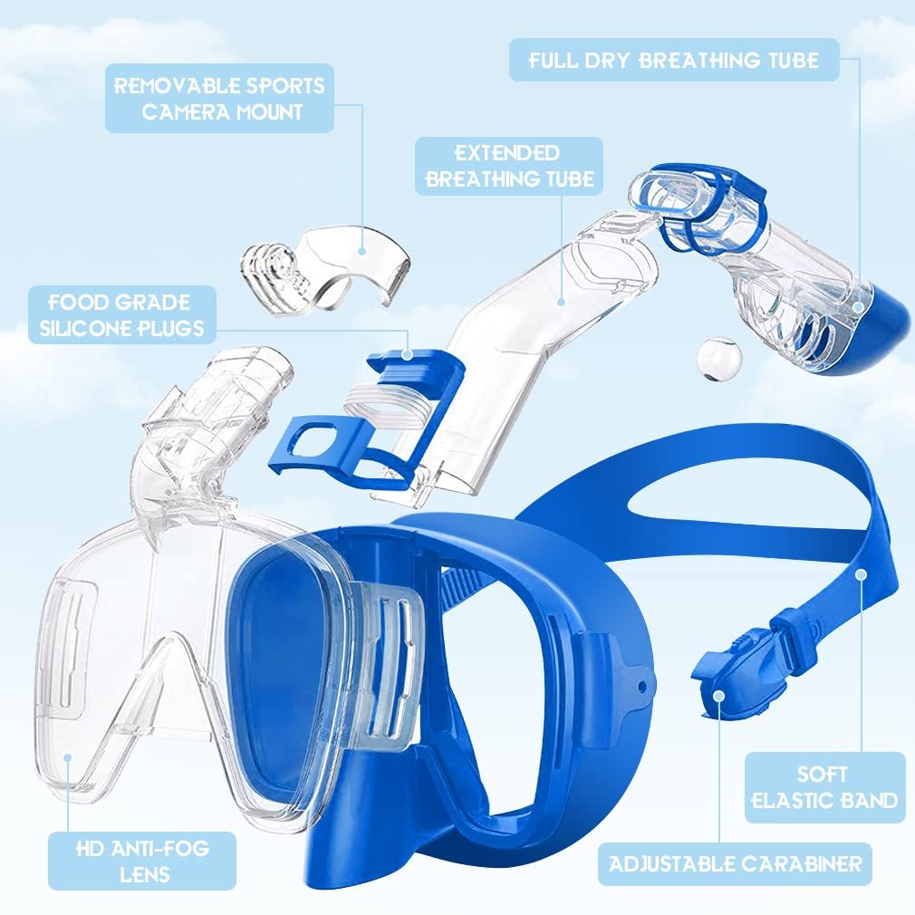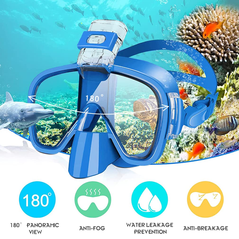 Half Face Snorkel Mask ,Foldable 180 Degree Panoramic View Snorkeling Mask with Camera Mount, Anti-Leak And Fog Color Blue Size S