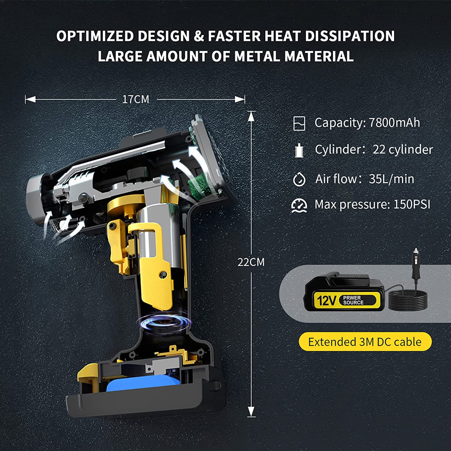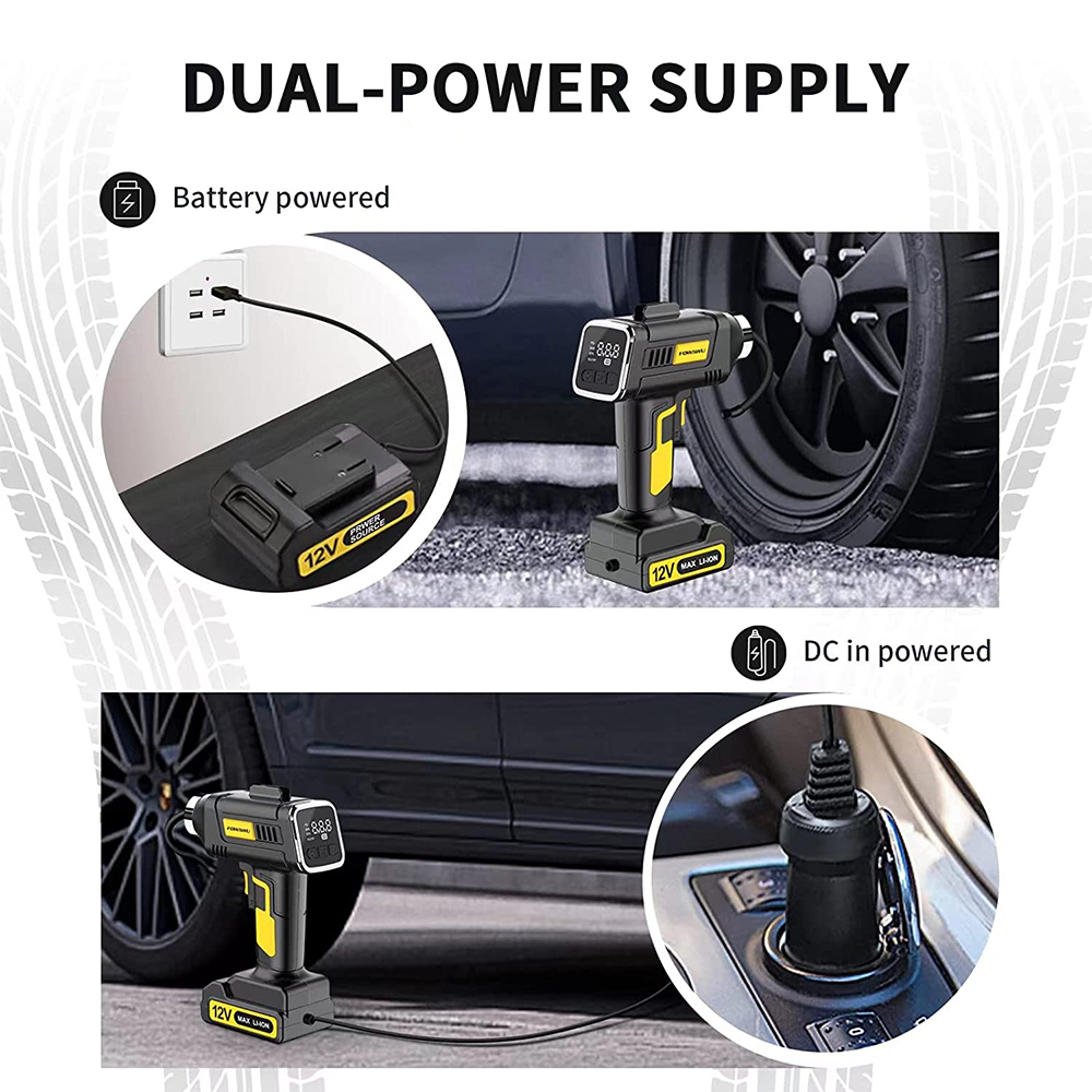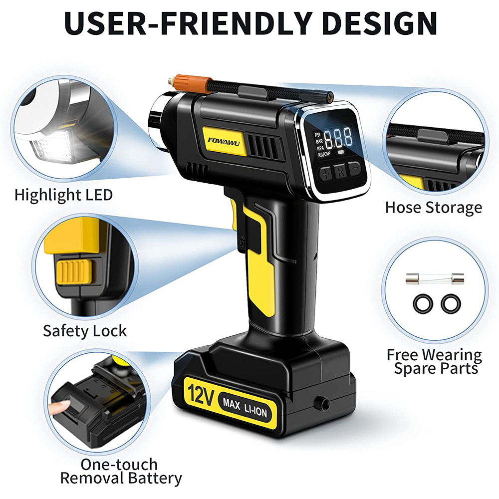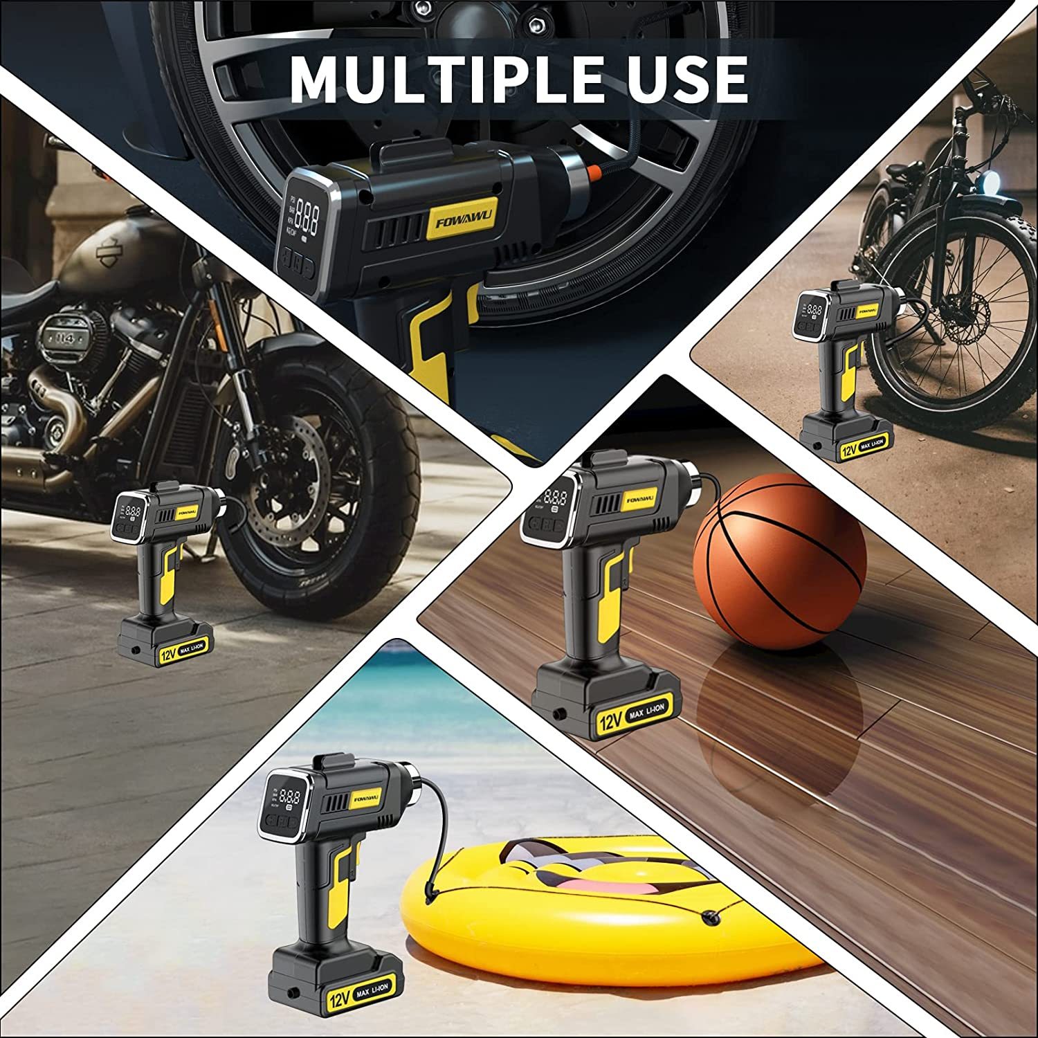 Handheld Air Pump Rechargeable Battery Powered 12V Car Adapter Digital Pressure Gauge Cars Motorcycles Tyres Inflator Portable Travel Tool