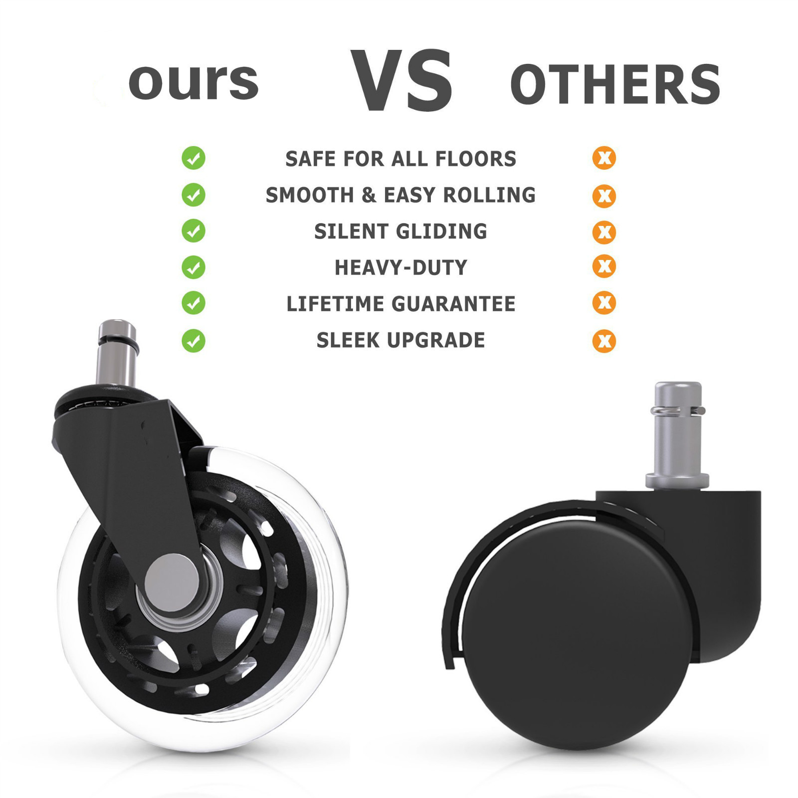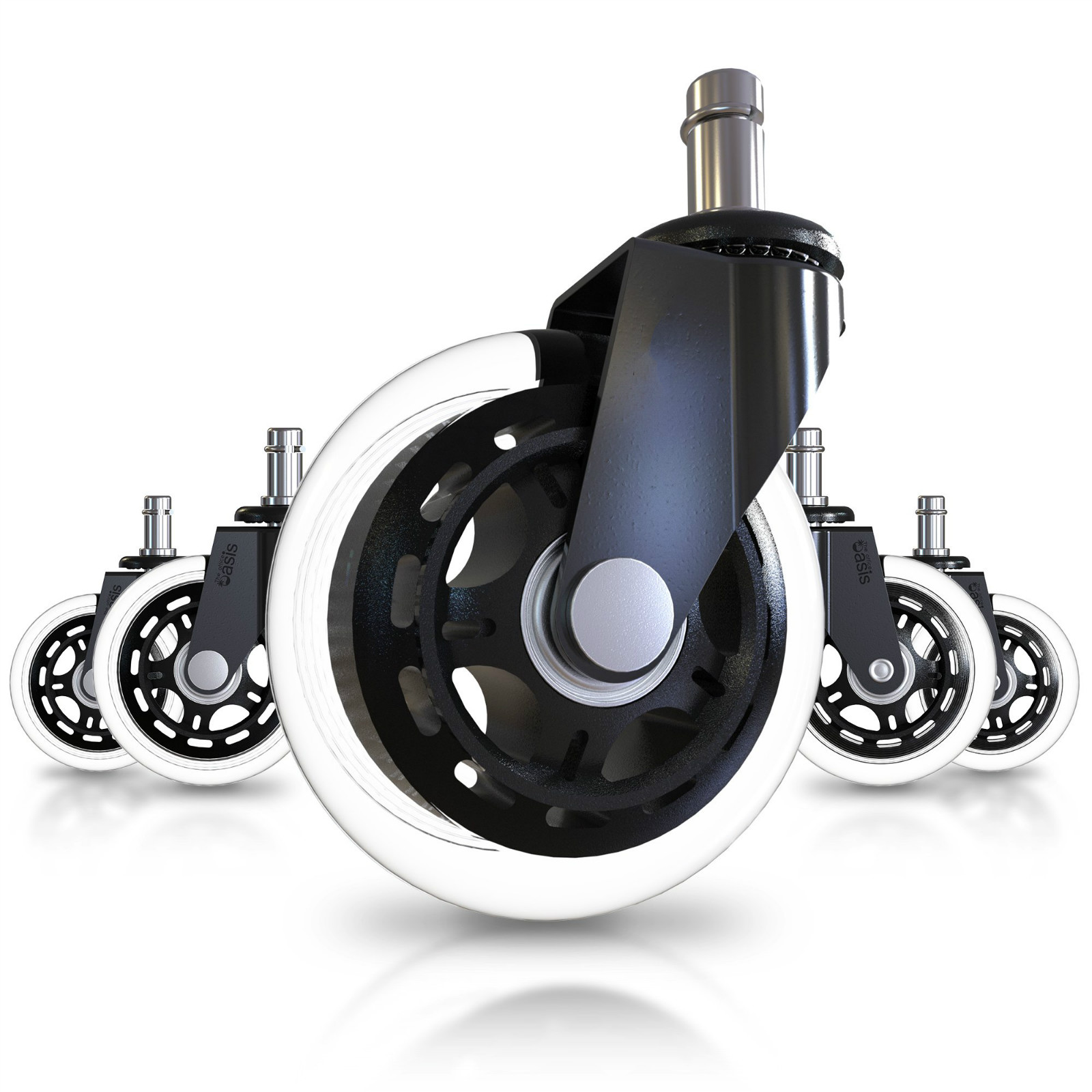Heavy Duty Office Chair Caster Wheels for All Floors including Hardwood Rollerblade Style Universal Fit 5 Pack