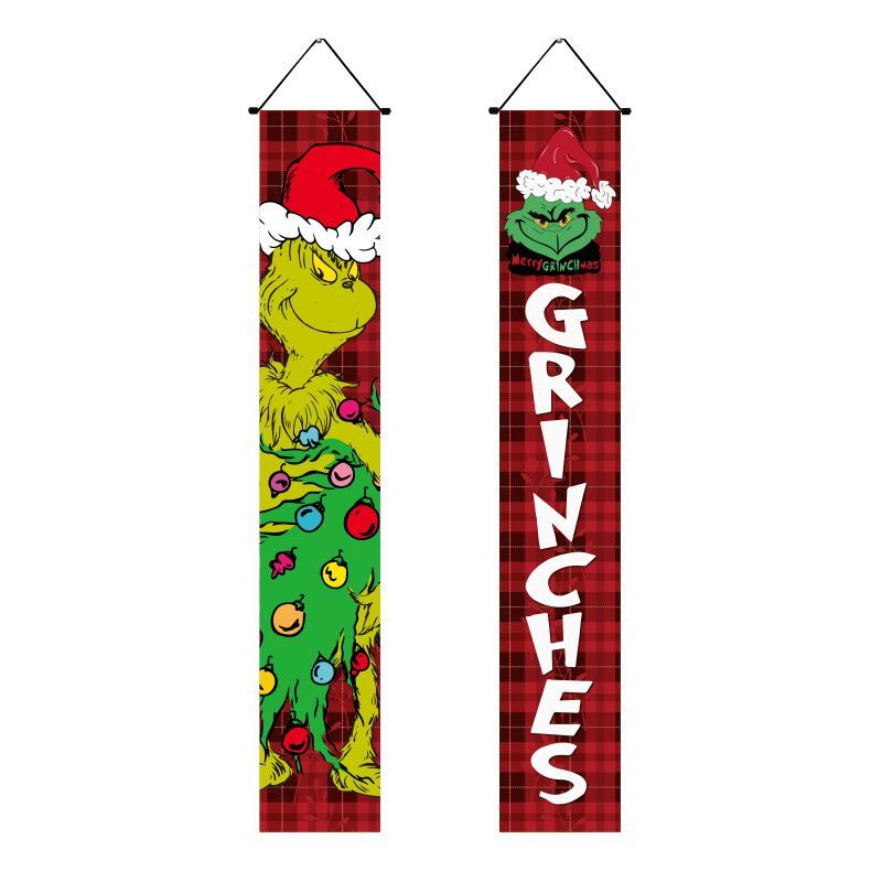 HTX2304236 Christmas Couplet Holiday Party Decorations Porch Flag Door Curtain Green Ghost Grinch Christmas Couplet(180*30cm)