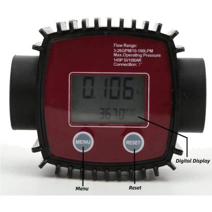 K25 1in Internal Thread Water Sensor Meter, Digital Display Flowmeter for Gasoline, Chemical Liquid (Red)