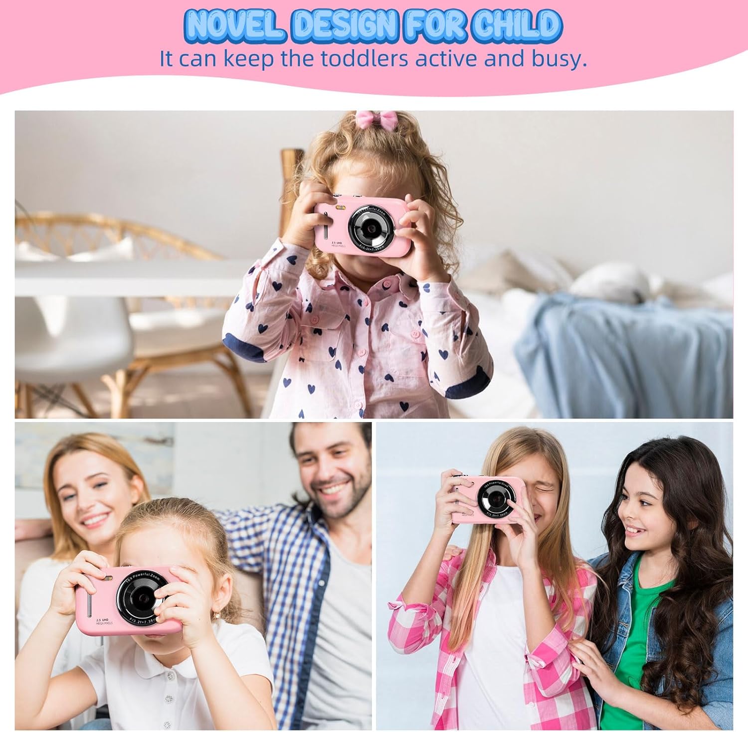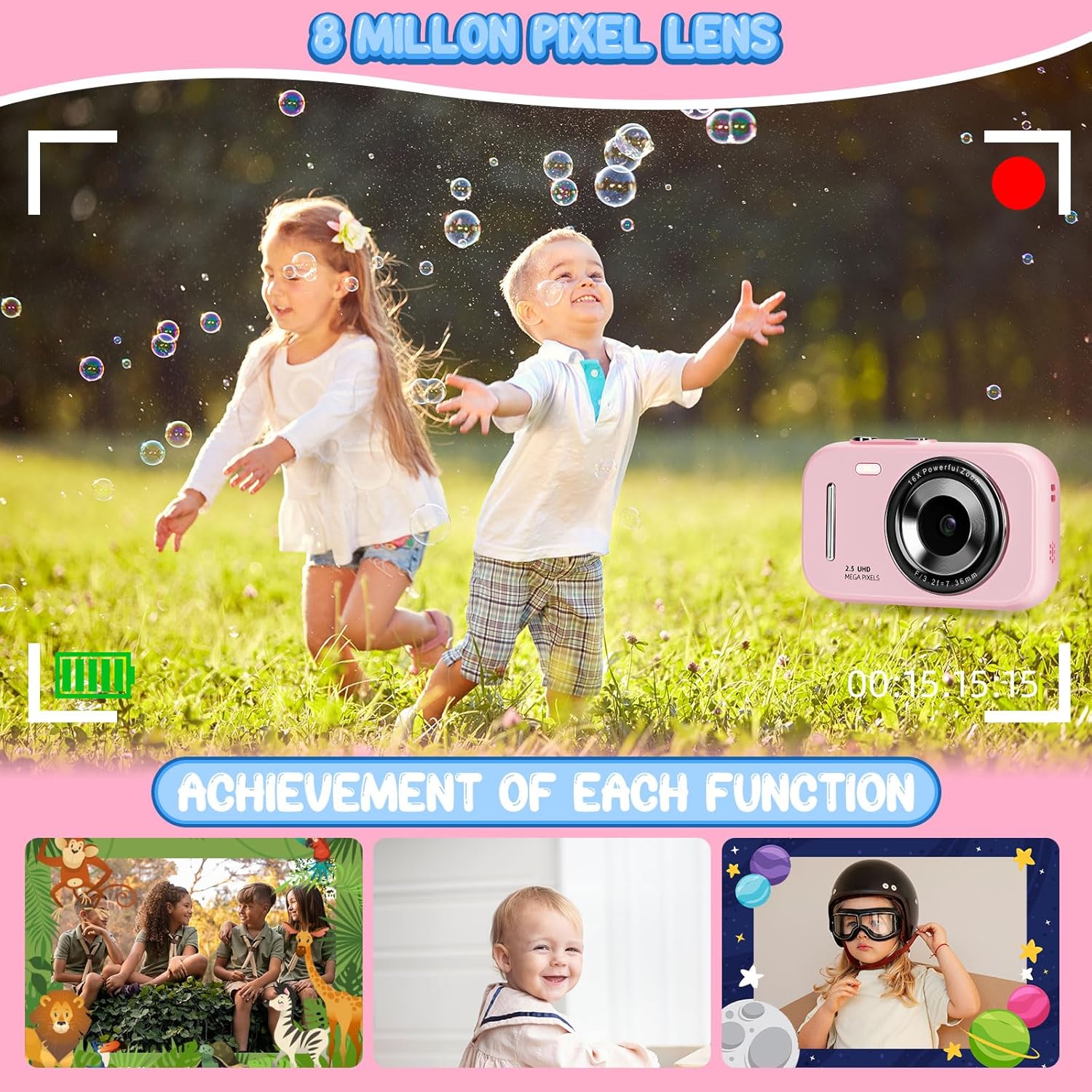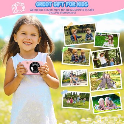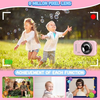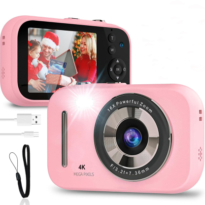 Kids Camera Digital Camera, 4K Autofocus Vlogging Camera for Kids with 16x Zoom Anti Shake, Flash and 48MP Point, Lanyard, Portable Toy Kids, Pink