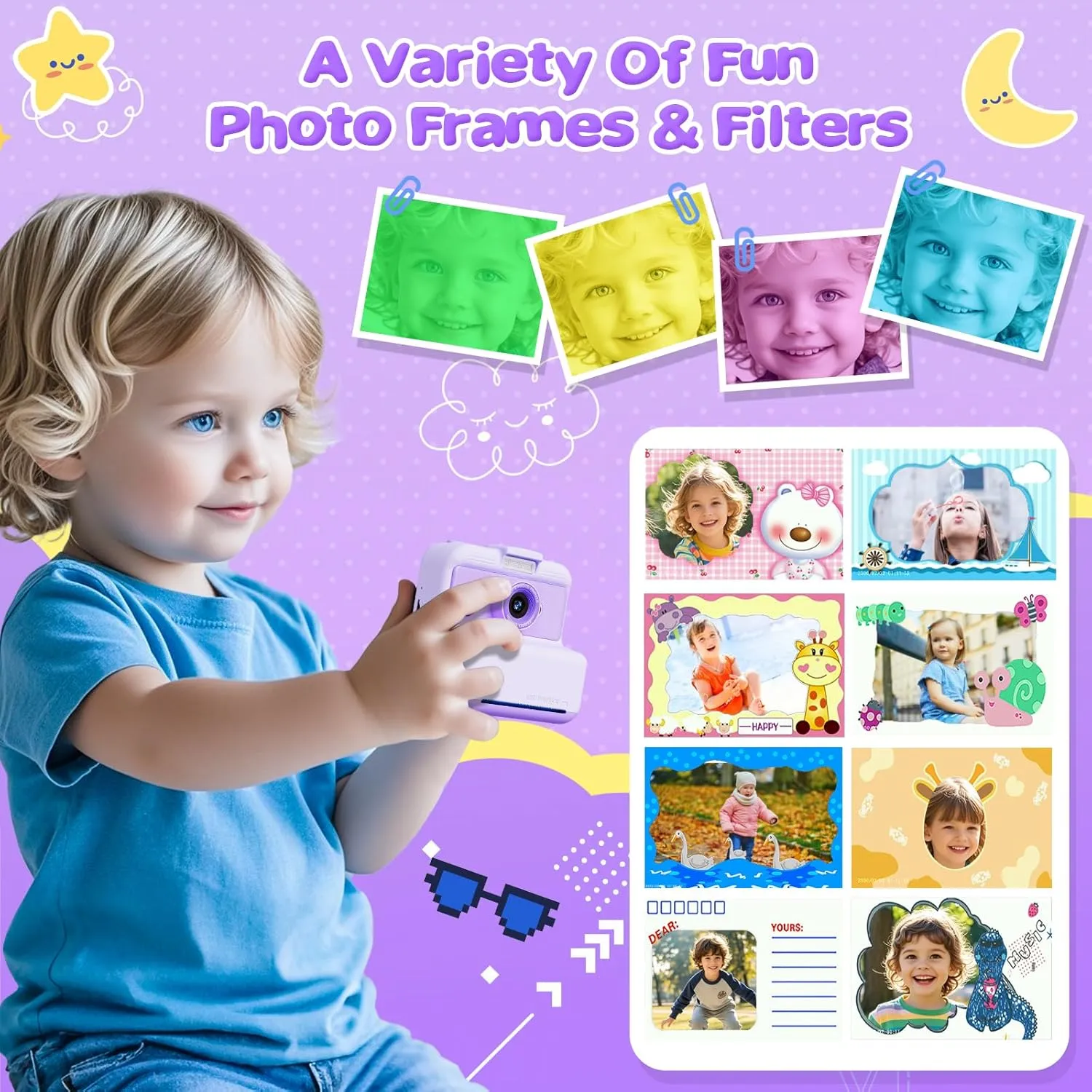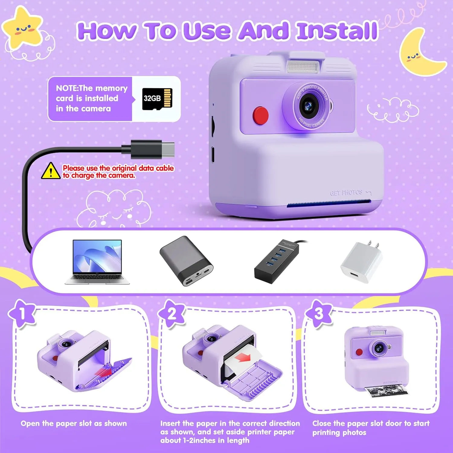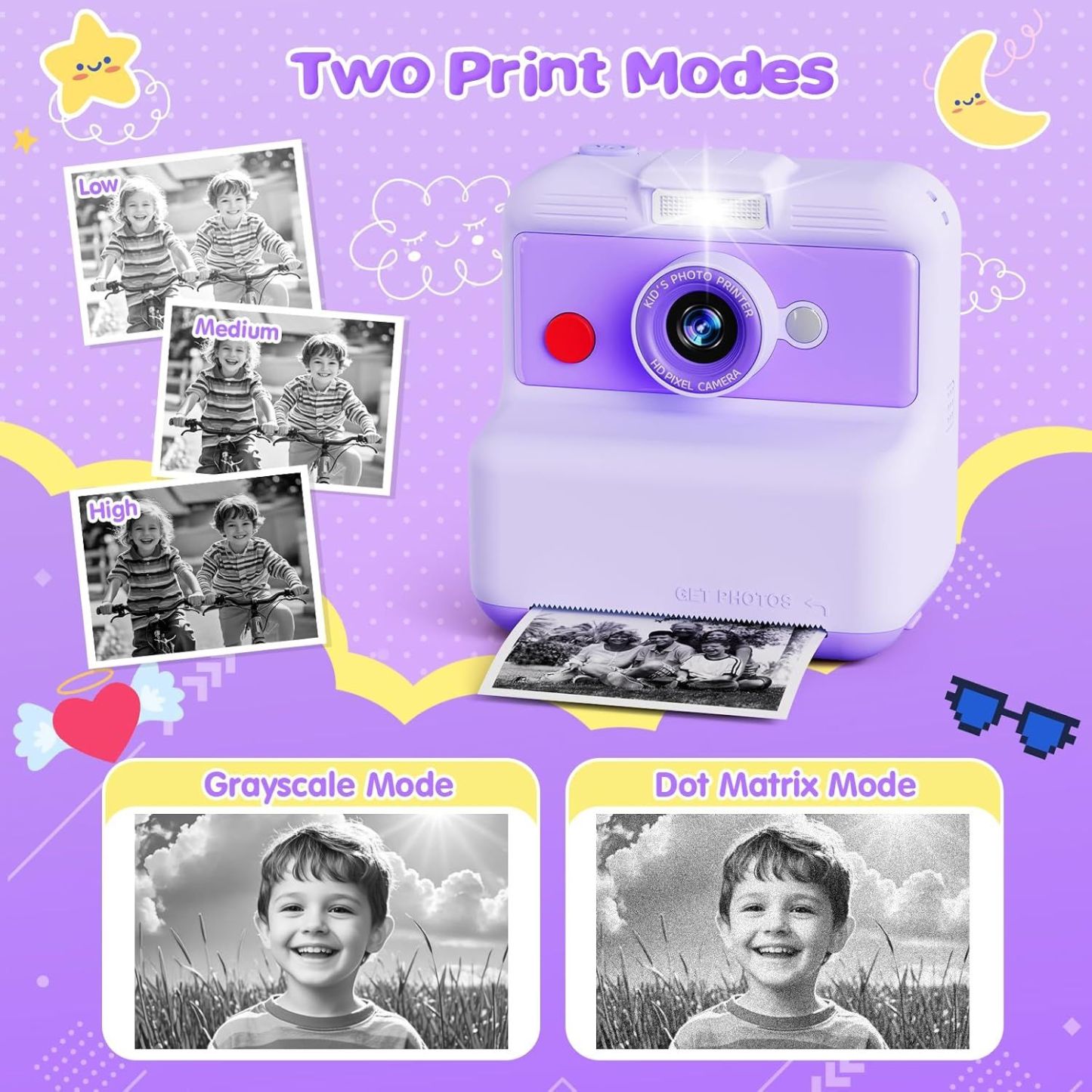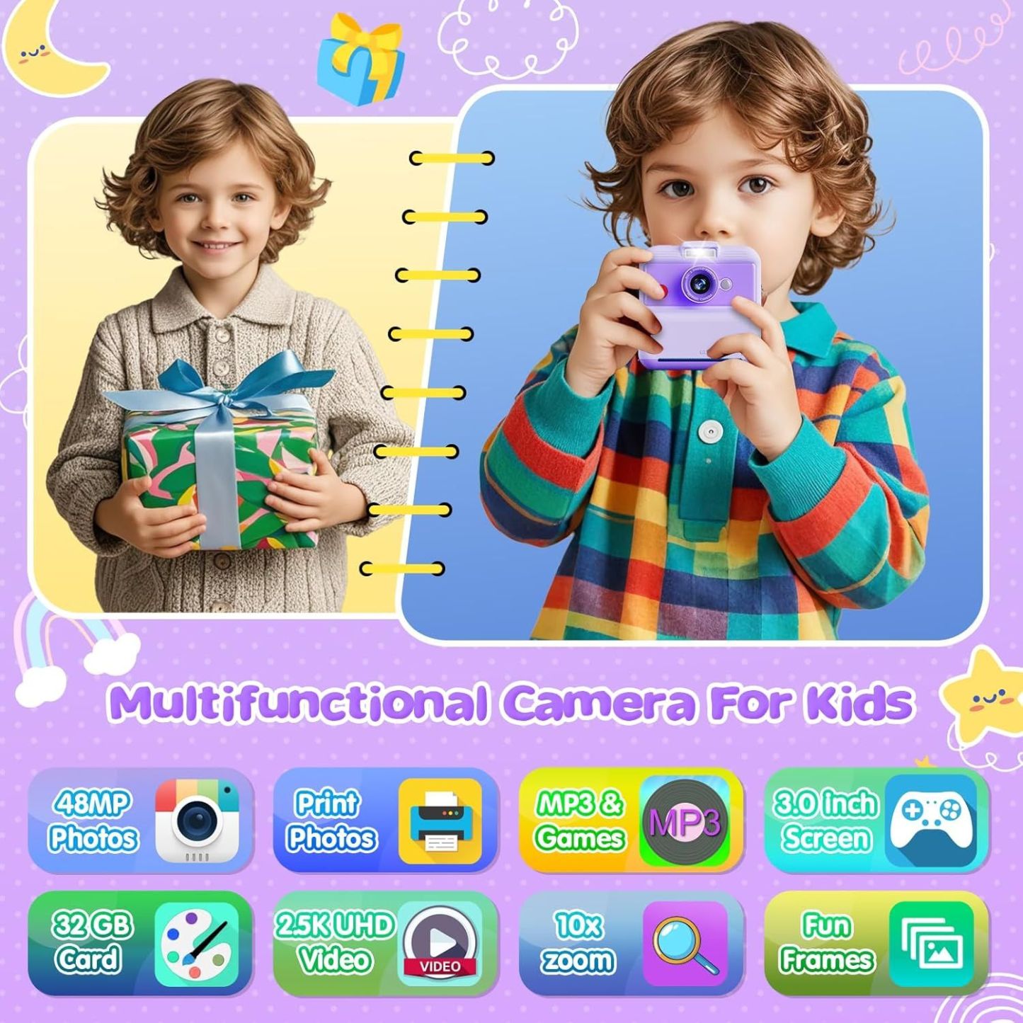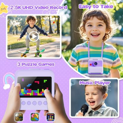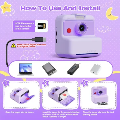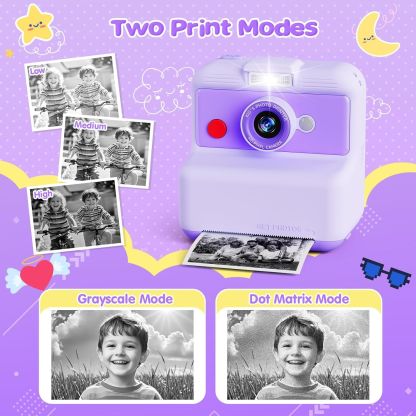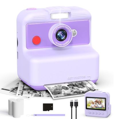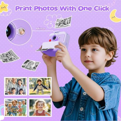 Kids Camera Instant Print, 48MP/2.5K UHD Kids Instant Print Camera, 3.0 inch Screen with Print Paper and 32G Card, Toddler Toy for Age 3 to 14, Purple