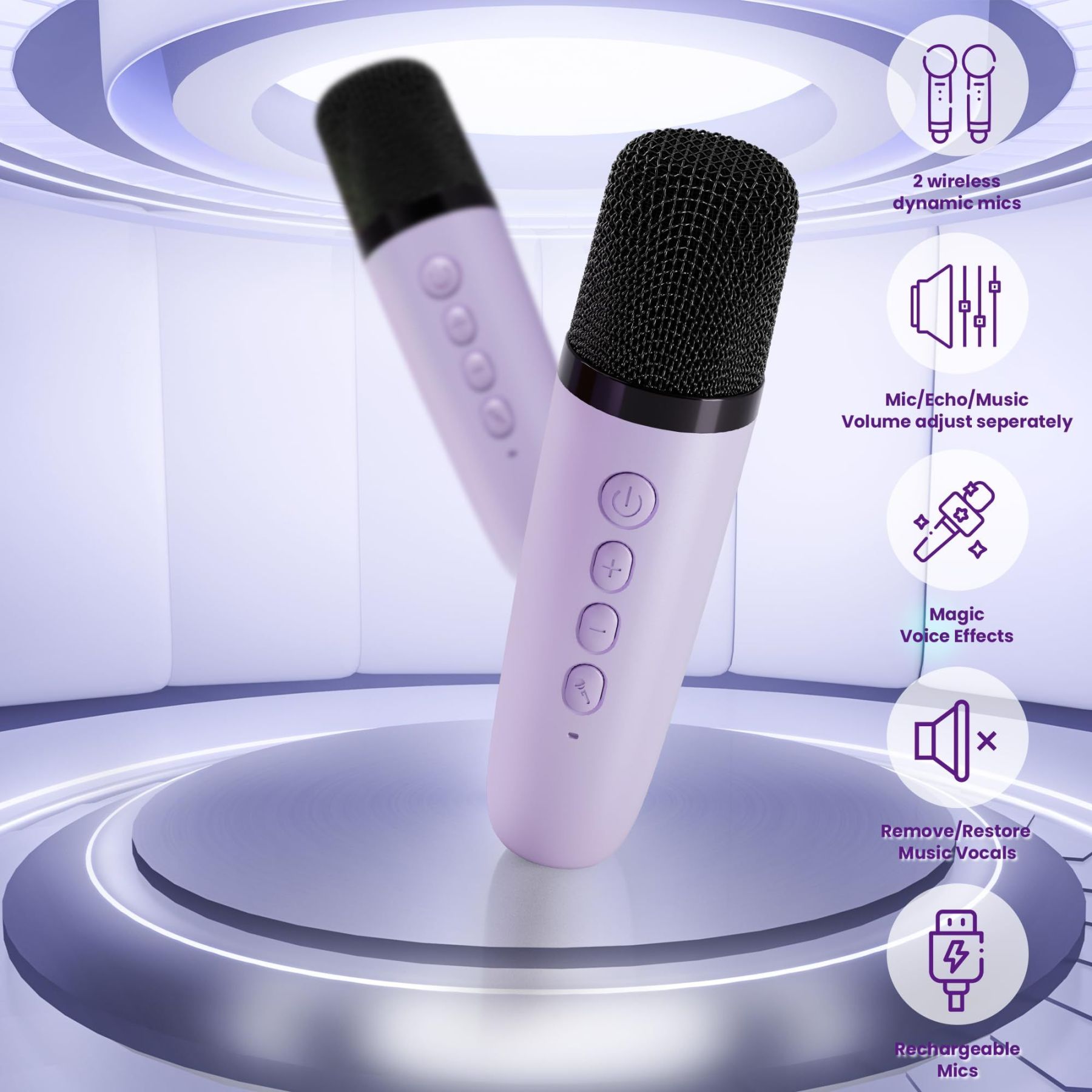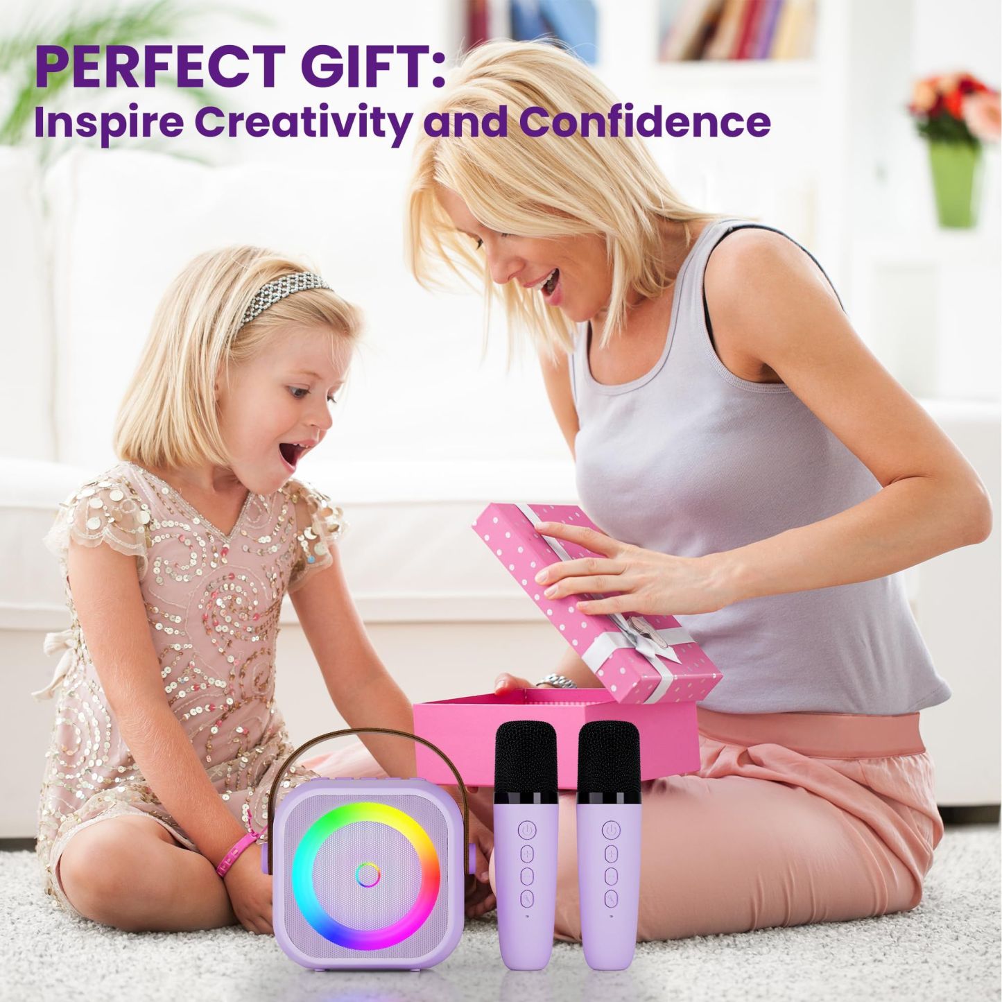 Kids Karaoke Machine: Perfect Birthday or Christmas Gift for Girls Ages 3+ (Purple, Includes 2 Microphones)