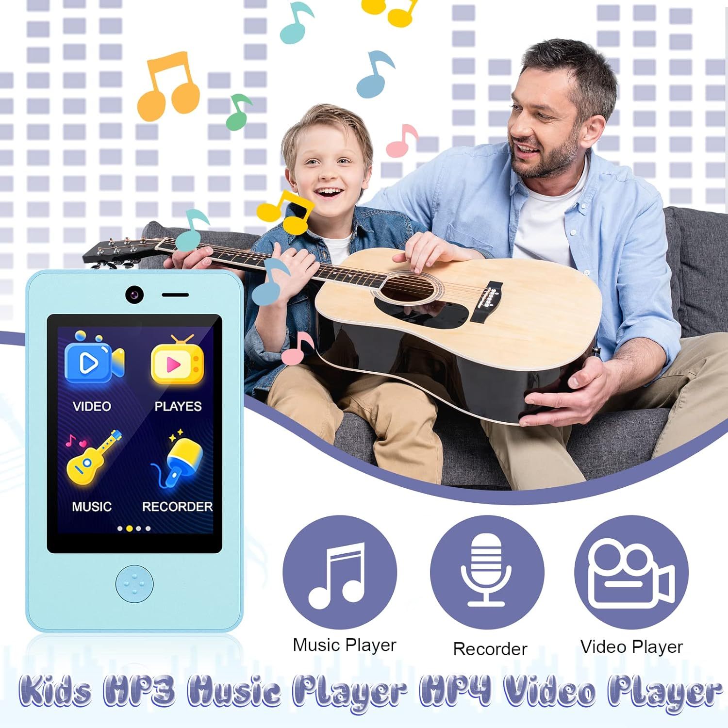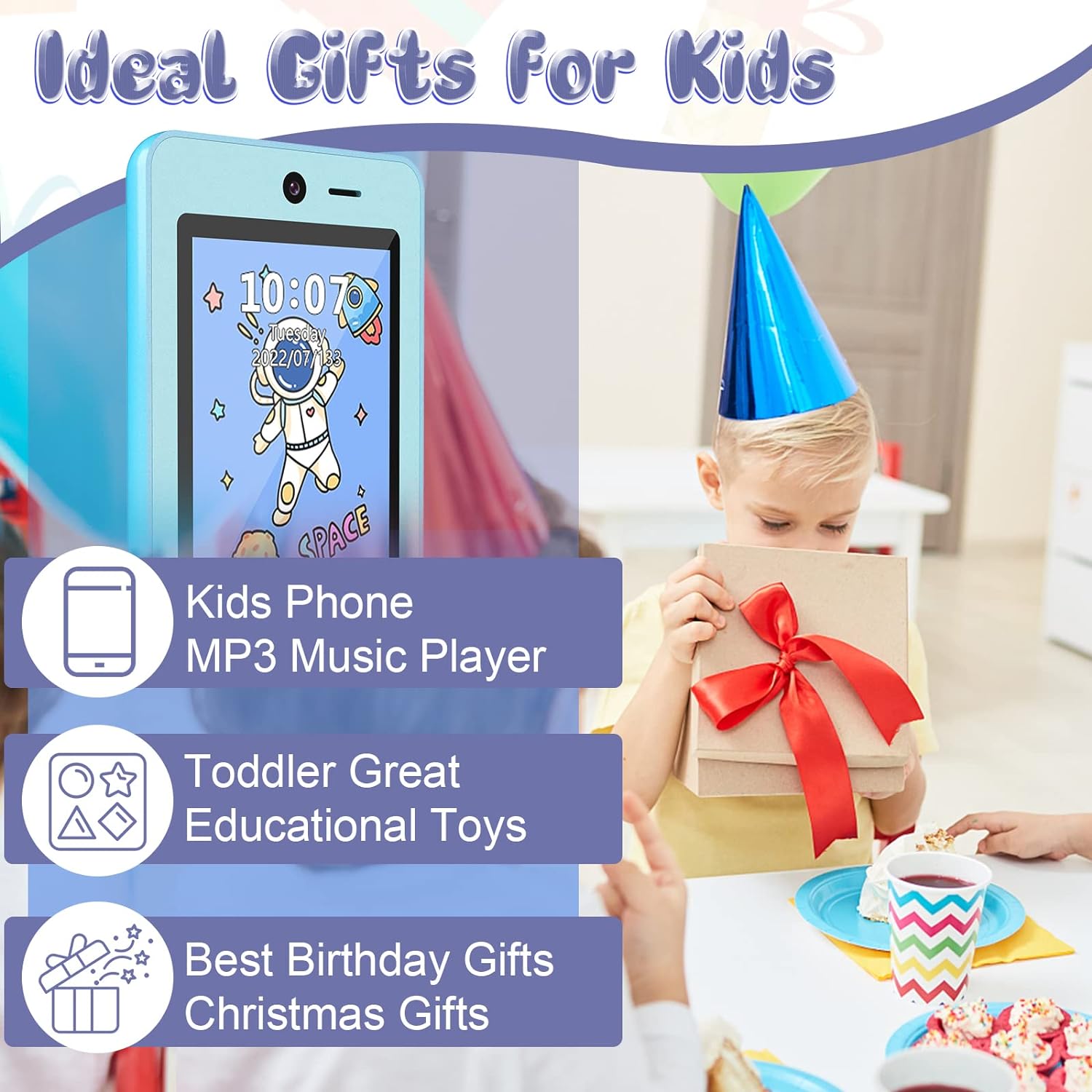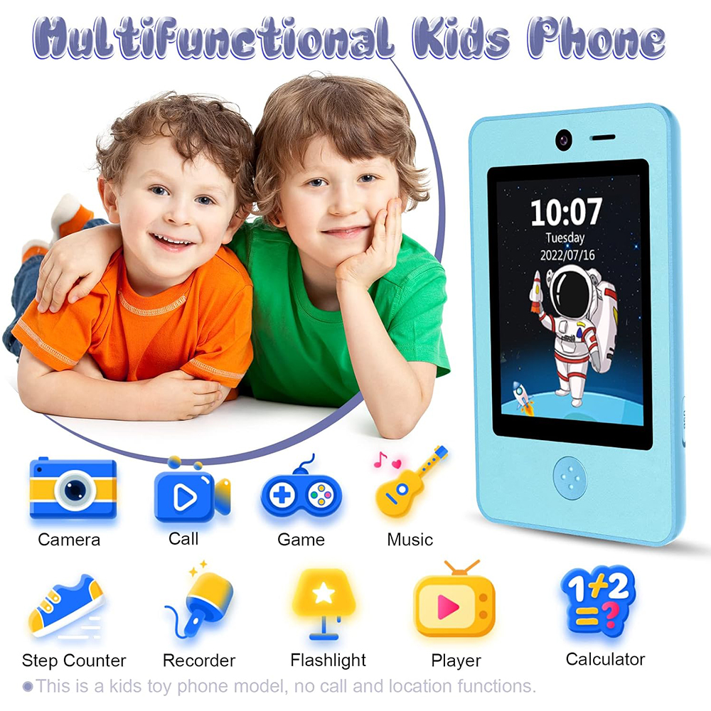 Kids Phone for Boys Touch Screen Cell Phone with 2 Camera Games Alarm Clock MP3 Music Player Phones for Kids Christmas Birthday Gifts Toys(Blue)