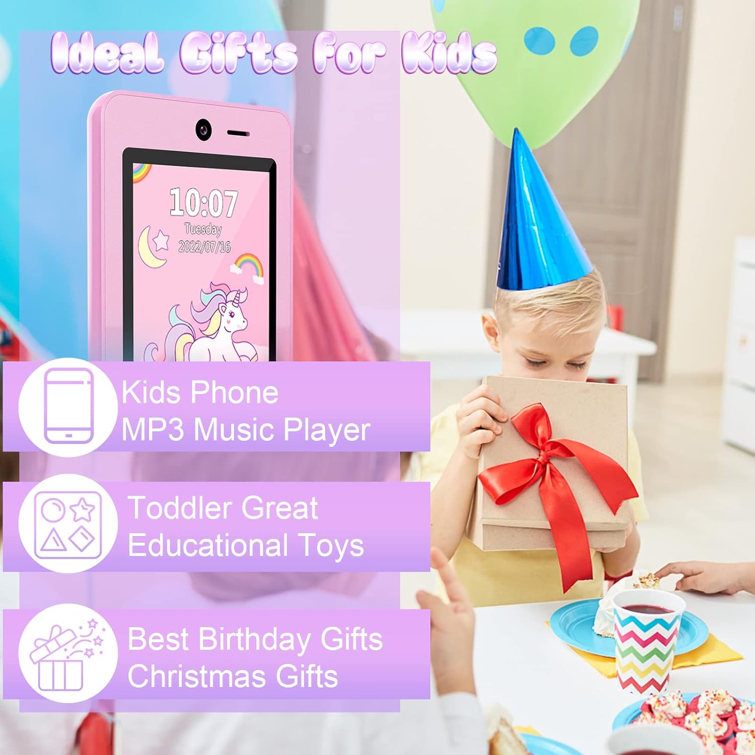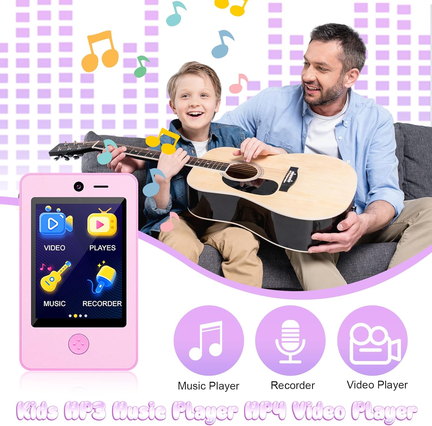 Kids Phone for Boys Touch Screen Cell Phone with 2 Camera Games Alarm Clock MP3 Music Player Phones for Kids Christmas Birthday Gifts Toys(Pink)