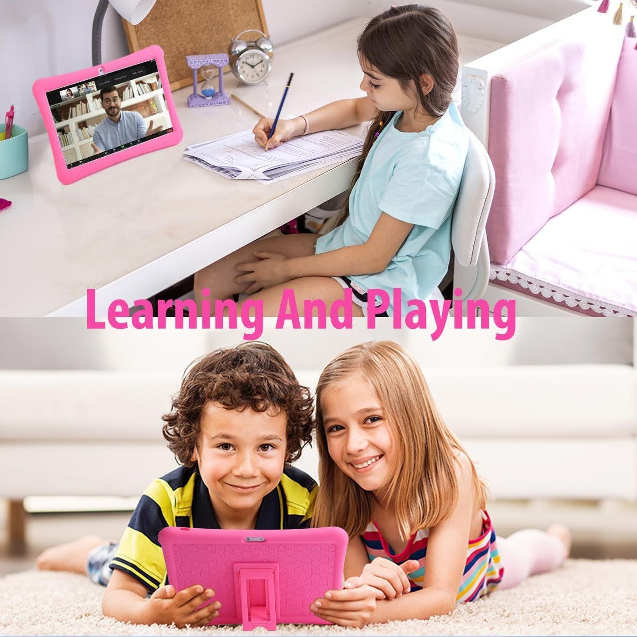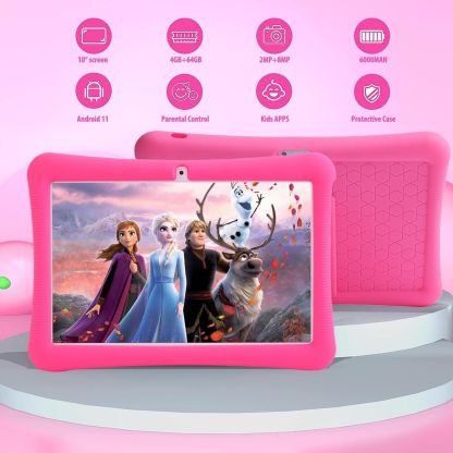 - Dual Cameras + Friendly design - The Android 11 tablet has dual built-in cameras with a 2.0 MP front camera and a 8.0MP rear camera. Specially designed kid-friendly shock-proof strap holder case made of soft silicone material to protect your children's tablet from scratches, dust, bumps and drops. Children don't have to hold tablets all the time while studying, watching and playing games.