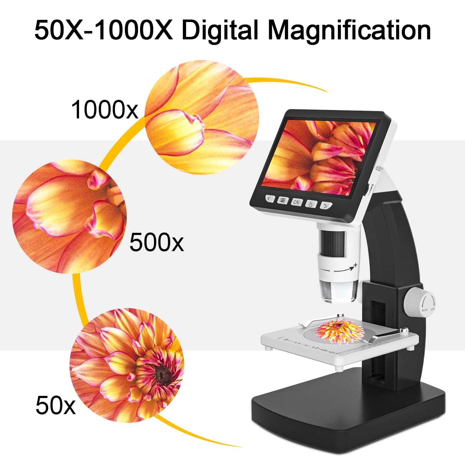 LCD Digital Microscope 4.3 inch Coin Microscope 50X-1000X Magnification,USB Microscope with 8 Adjustable LED Lights