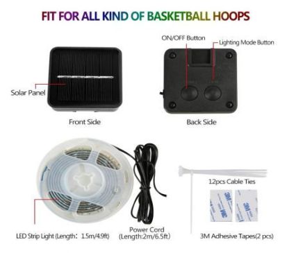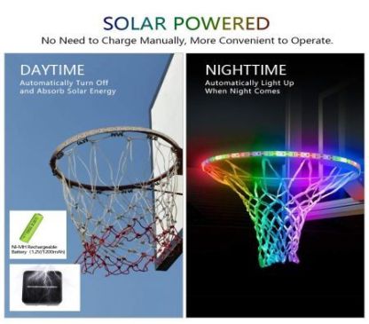 LED Basketball Hoop Lights, Solar Powered Glow-in-The-Dark Basketball Rim Lights, Waterproof Super Bright Strip Lights with 8 Light Modes
