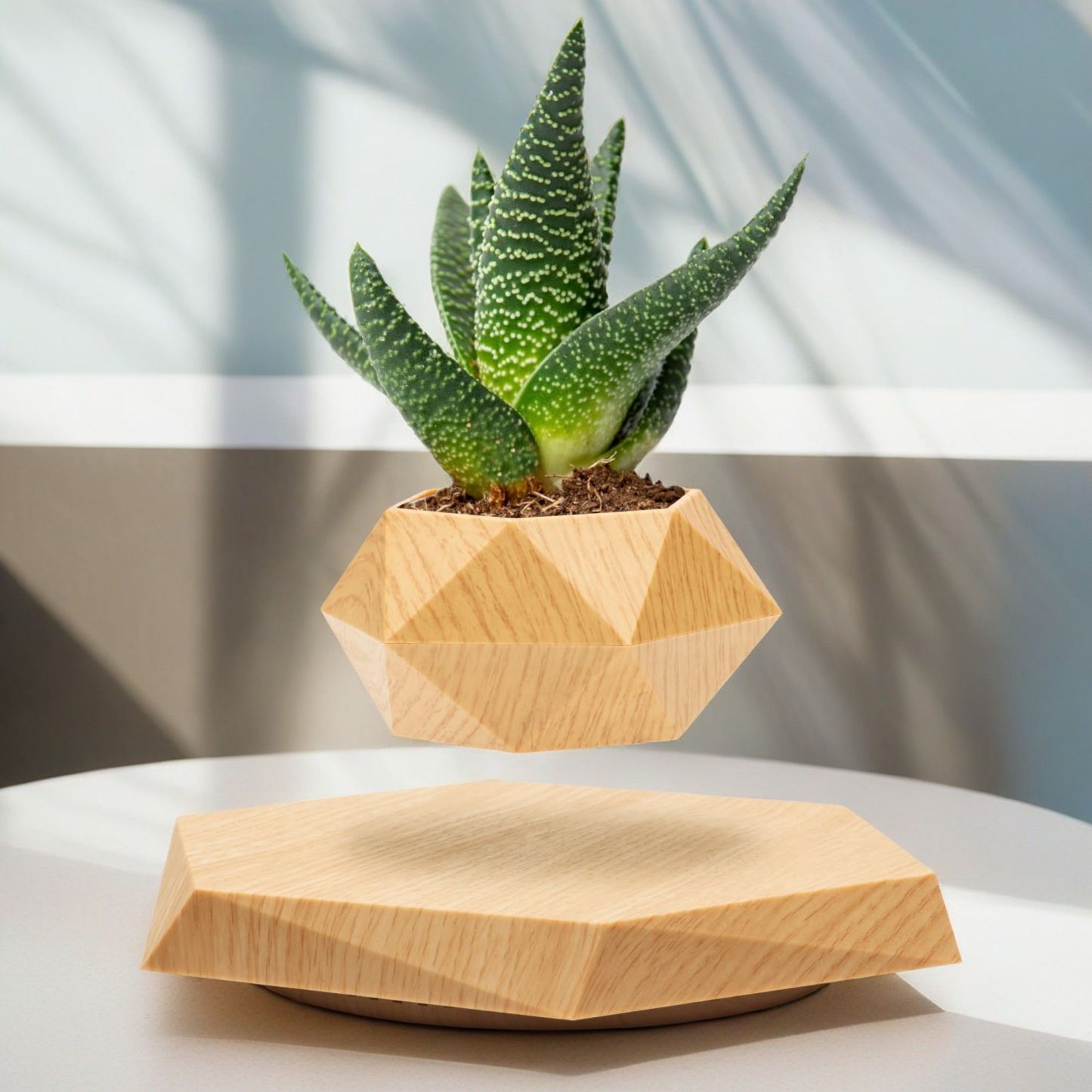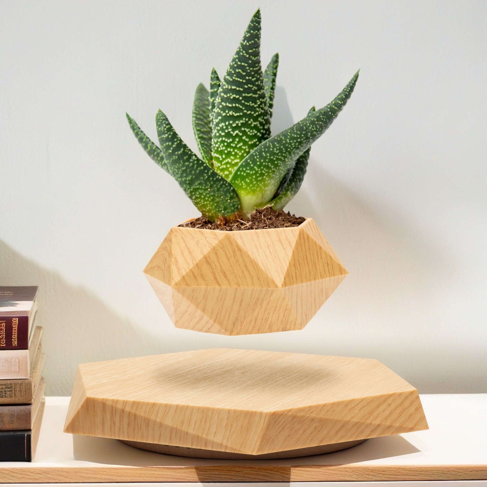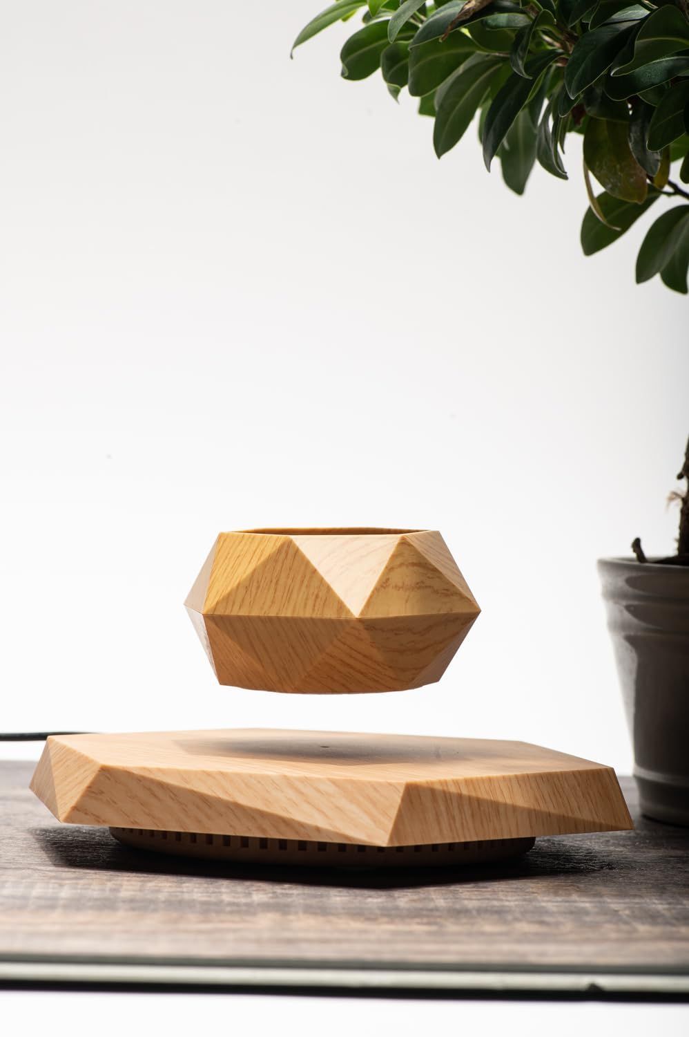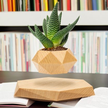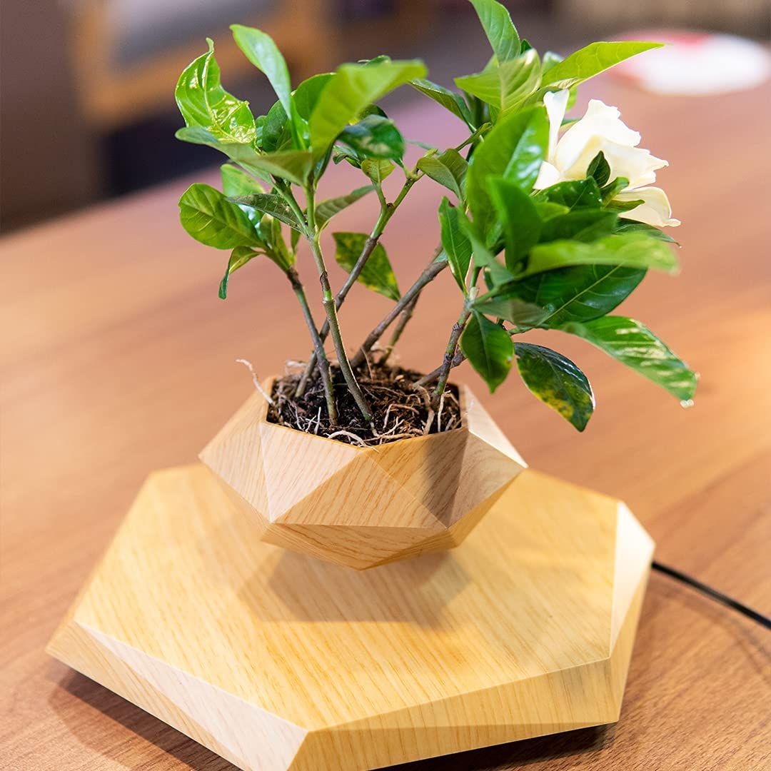 Levitating Plant Pot Floating Plant Pot for Small Plants Home Office Decor Magnetic Floating Levitating Display (Wood)