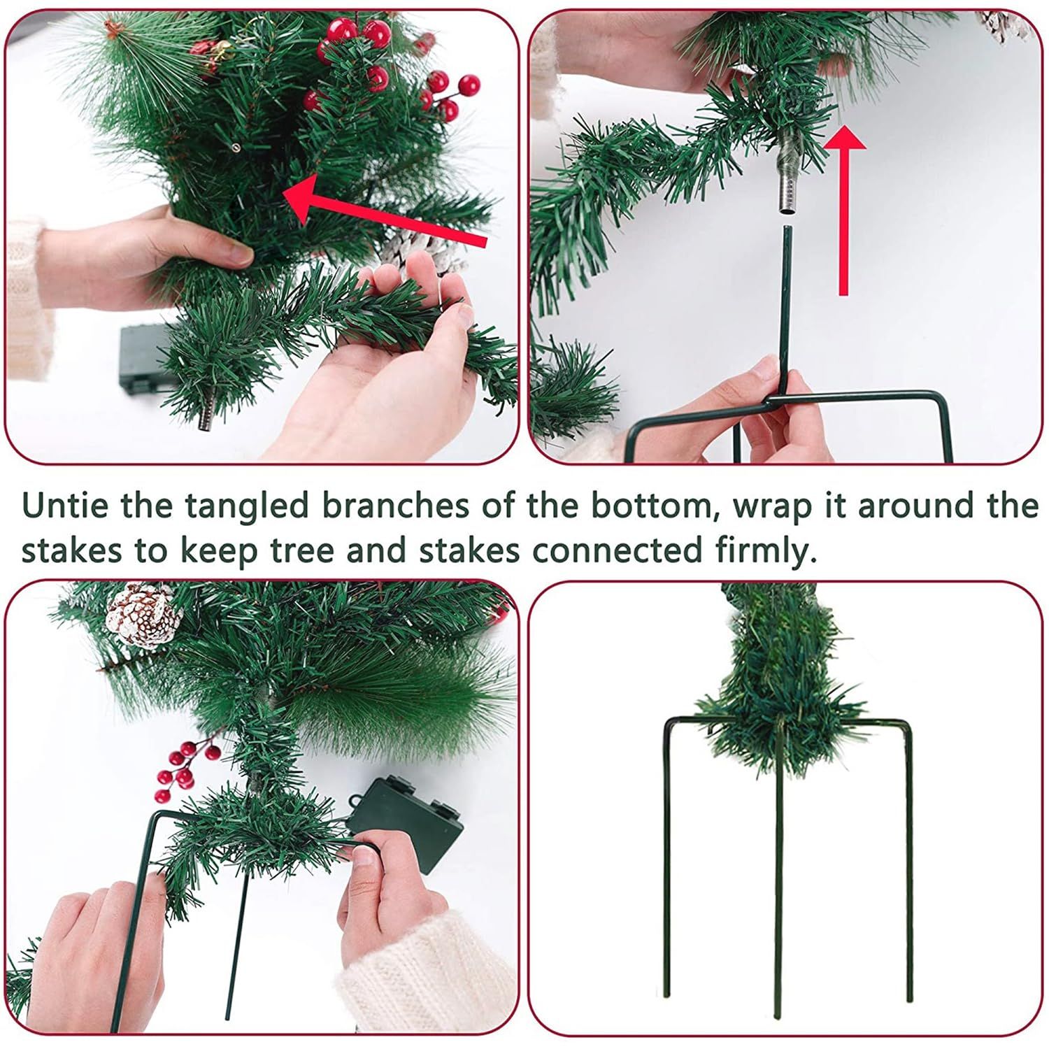 Lighted Artificial Christmas Urn Filler,Pre-lit Xmas Pine Trees with Cones,Golden & Red Berries,Tripod Stake and 60 LED Lights,Outdoor Light Up Planter Filler Holiday Home Decor,2 Pack