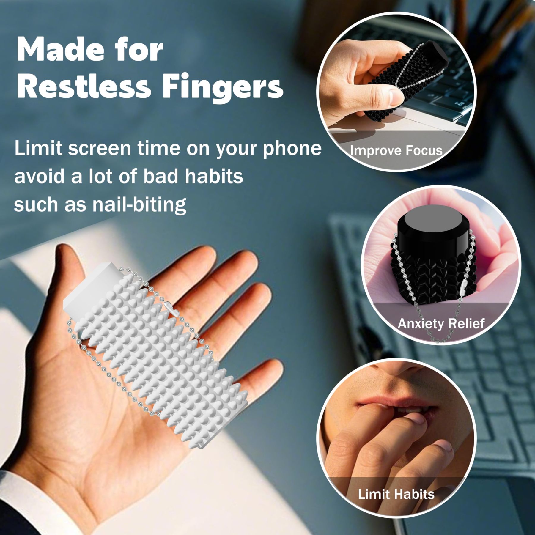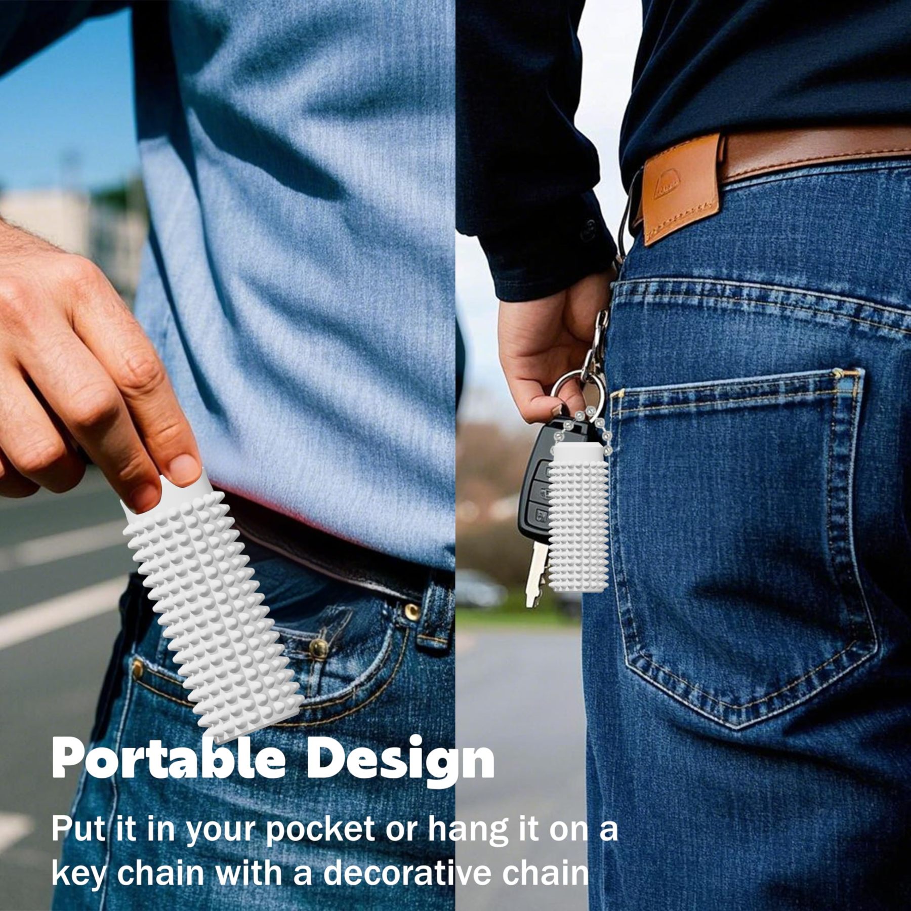 Little Ouchies Fidget Pocket-Sized Stim Keychain with Spiky Grippie Design,Anxiety Stress Relief Sensory Toy,Unique Gifts for Friends Family (White)