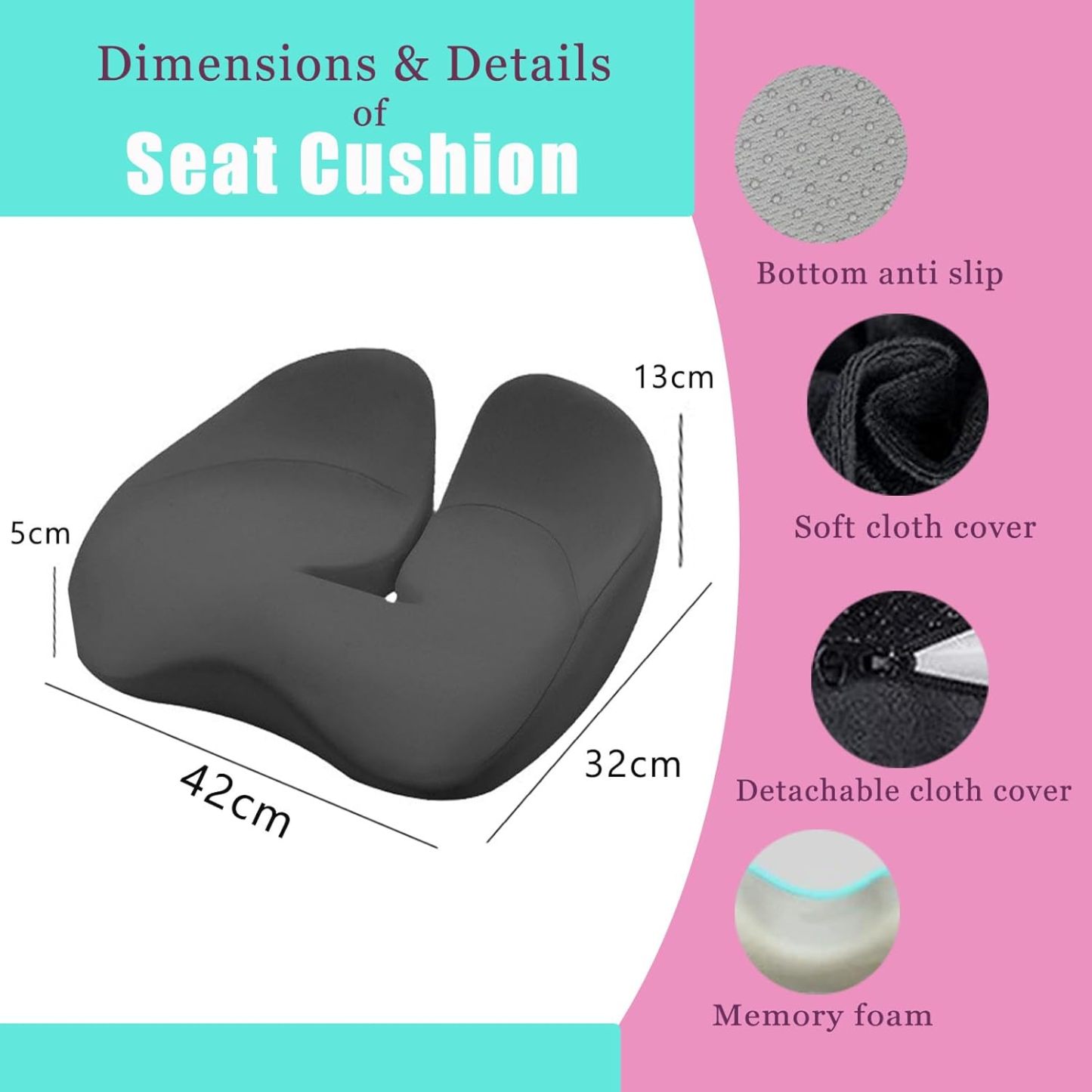 Enjoy lasting comfort with this memory foam seat cushion, crafted to ease tailbone, sciatica, and hemorrhoid discomfort. Its ergonomic split design expands the contact area, suspending the coccyx and perianal region to reduce pressure while softly supporting hips and thighs. Ideal for office workers, drivers, or wheelchair users, it fits any chair, enhancing posture during long sitting sessions. The high-quality memory foam adapts to your body, with perforated areas for breathability. A non-slip rubber base keeps it secure, and the removable, washable cover with a hidden zipper simplifies cleaning. A thoughtful gift for those with prolonged sitting needs, this cushion delivers targeted relief and all-day comfort.
