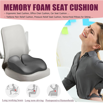 - Softly Supporting Your Butt - Pressure Relief, Sciatica Pain Relief: Pressure relief seat cushion is made of high-quality memory foam, designed with ergonomics in mind, providing better support and envelopment for the buttocks and thighs. The area in contact with the coccyx and perianal region is perforated. The comfort seat cushions are particularly suitable for individuals who spend long hours sitting in the office and for those suffering from hemorrhoids and sciatica ?